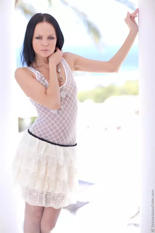 Милая белокурая девушка в чулках Angellina Sapphic показывает свою красивую киску — Angellina Sapphic