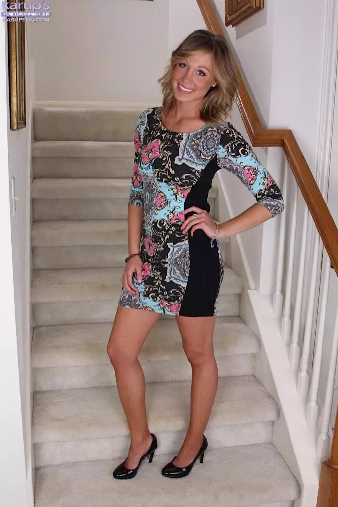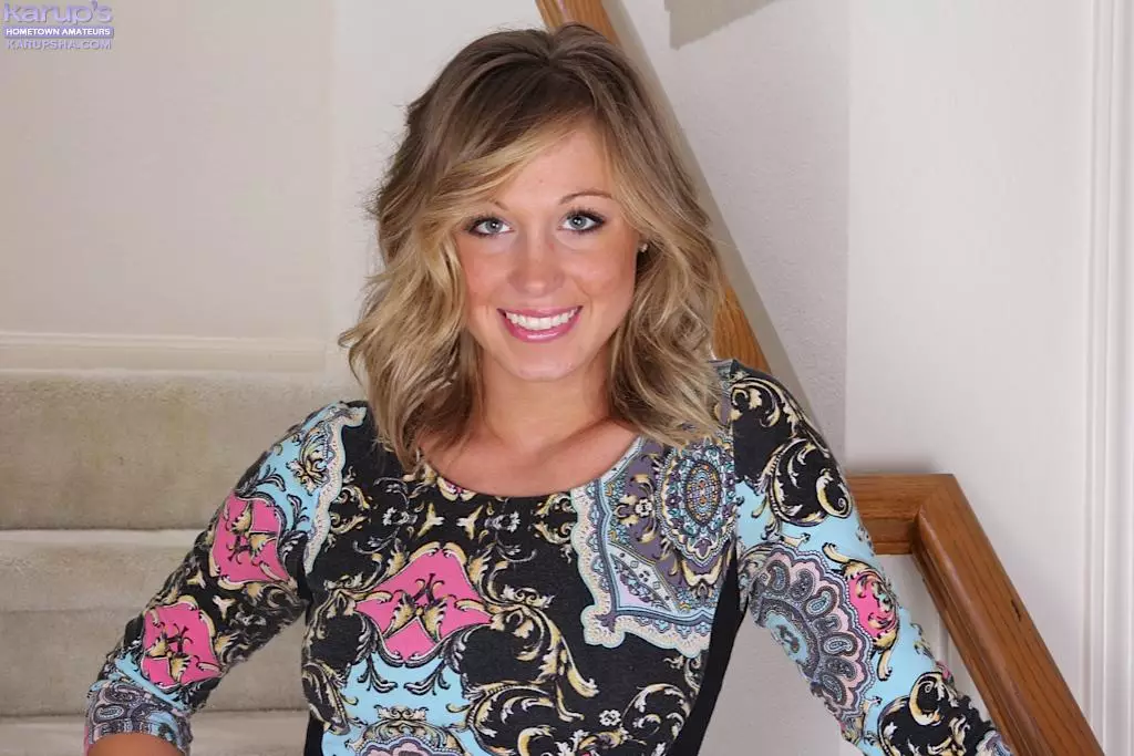 Красотка-блондинка Ashley Jones раздевается на лестнице и играет со своей киской — Ashley Jones