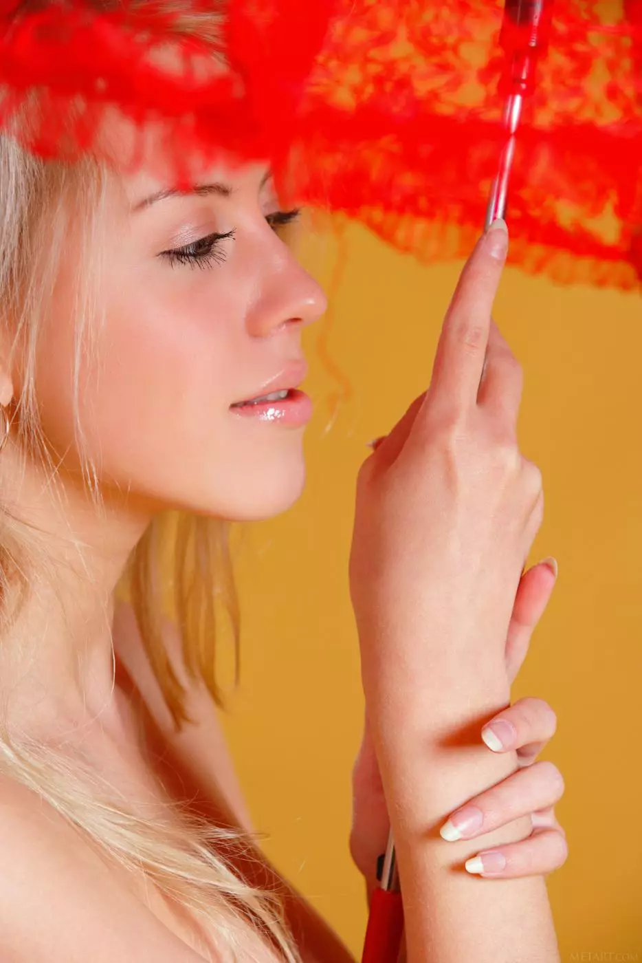 Длинноногая элегантная блондинка Barbara D позирует с зонтиком и показывает свое прекрасное молодое тело — Barbara D