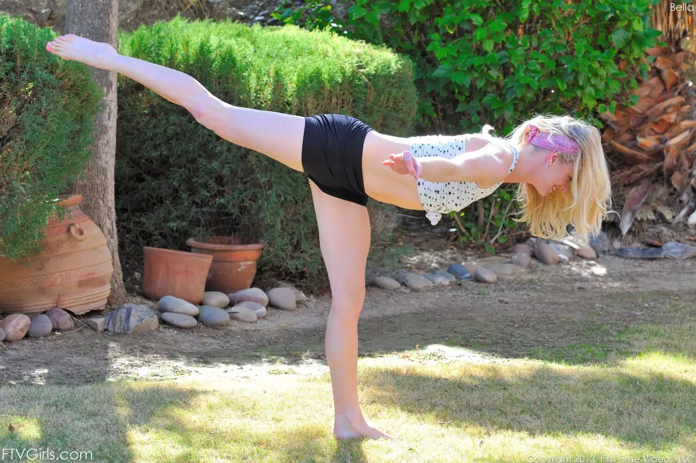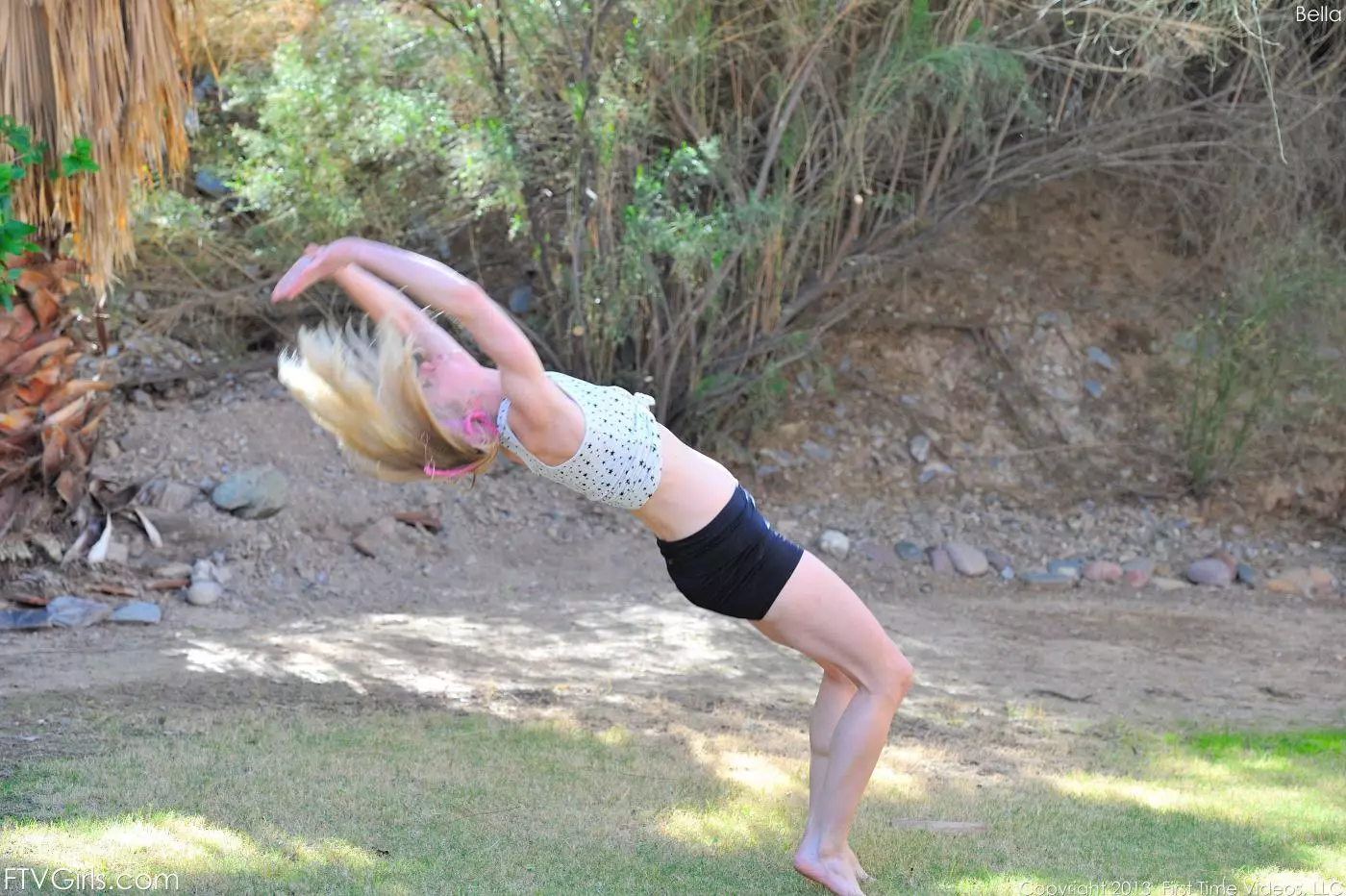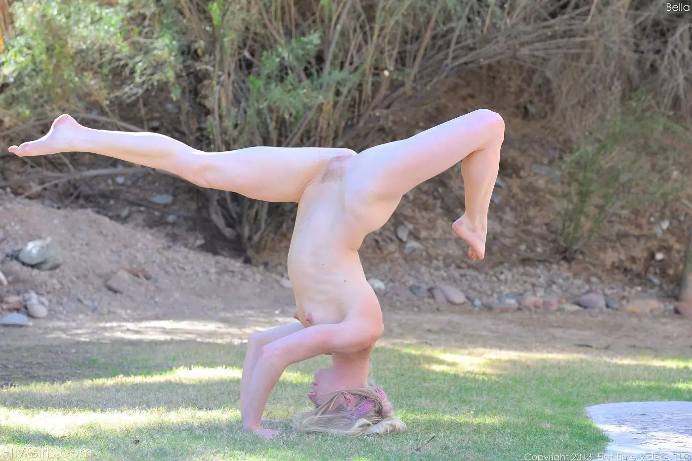 Гибкая куколка Bella Bends снимает одежду и делает упражнения на улице — Bella Bends