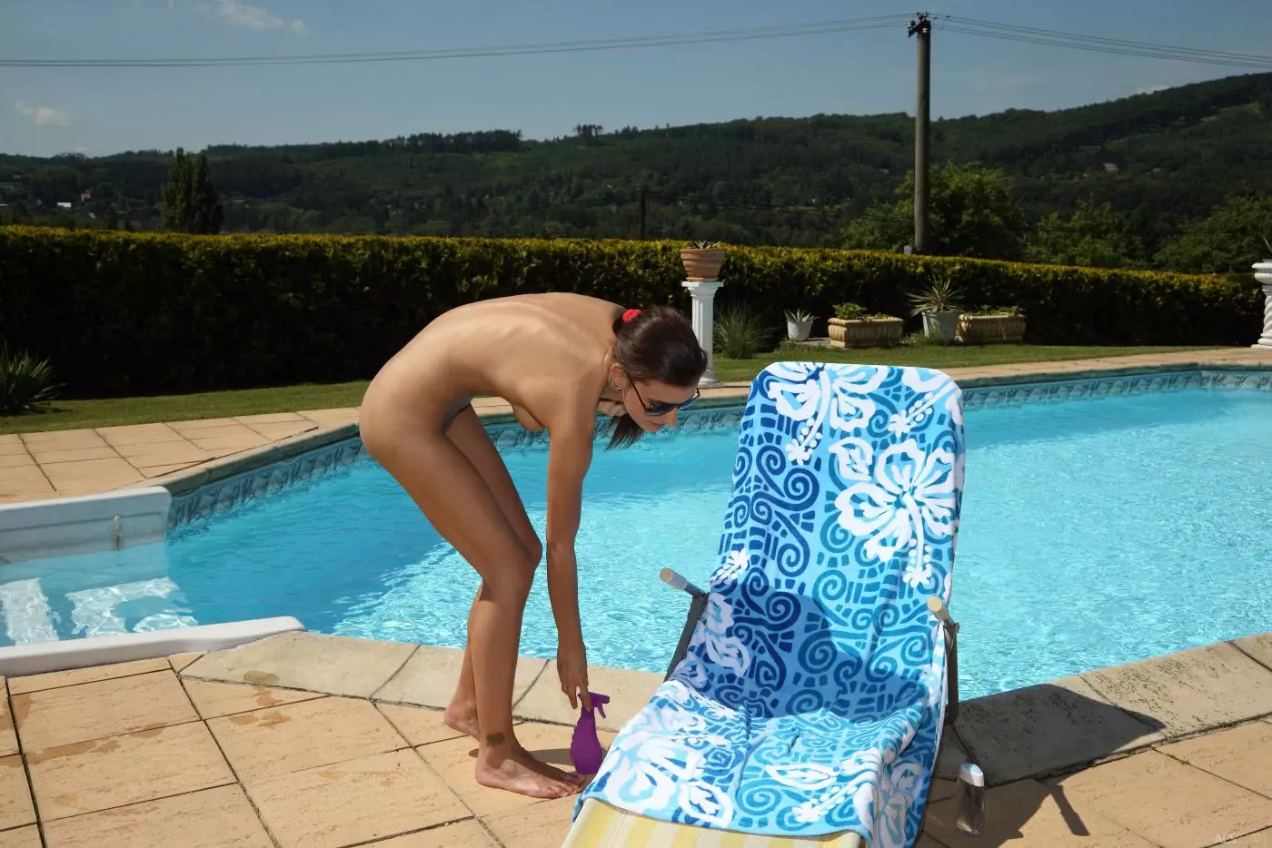 Сексуальная брюнетка Candice Luca снимает бикини у бассейна — Candice Luca