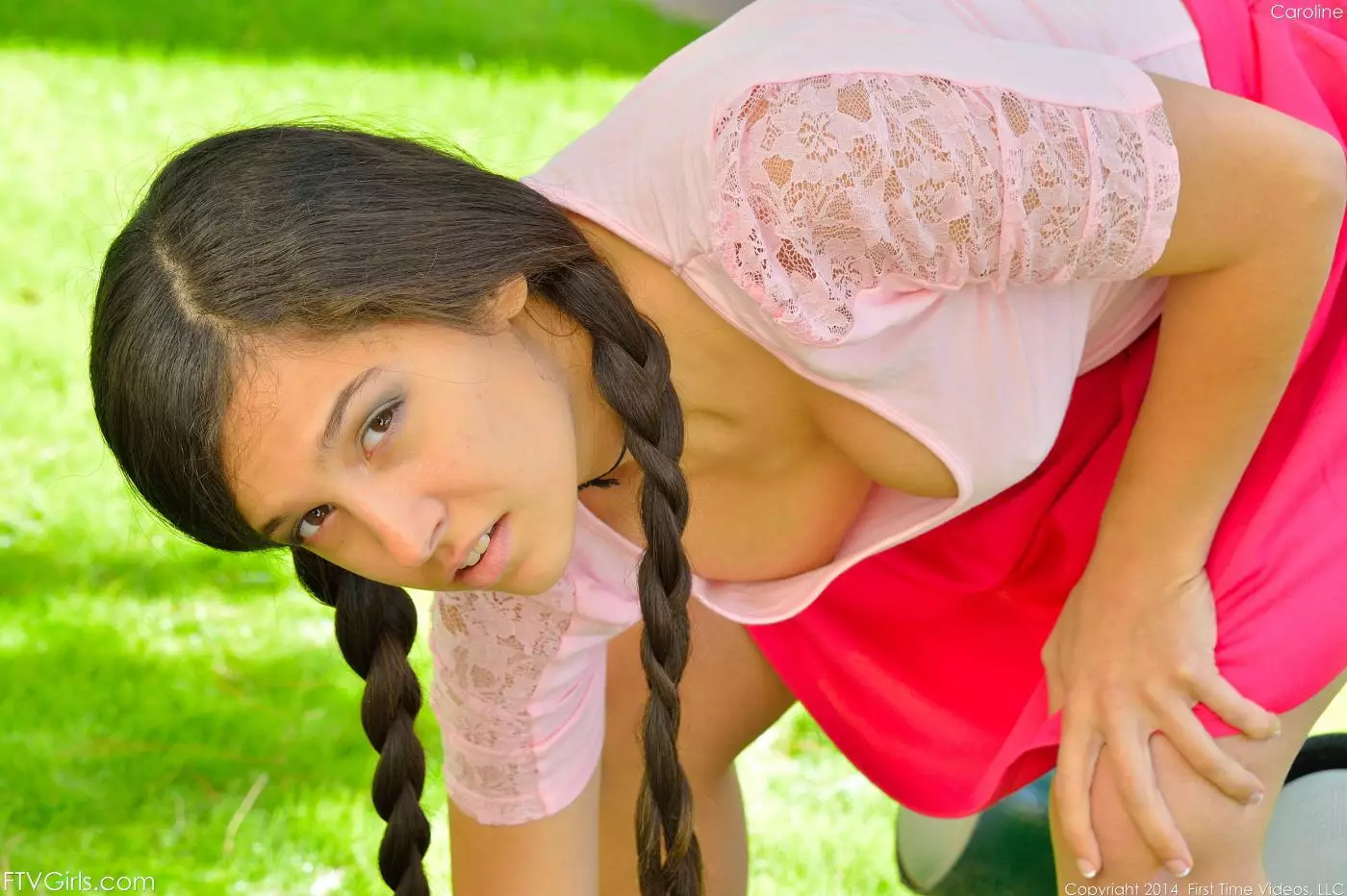 Игривая латинка Caroline Ray мастурбирует не снимая юбки на улице — Caroline Ray