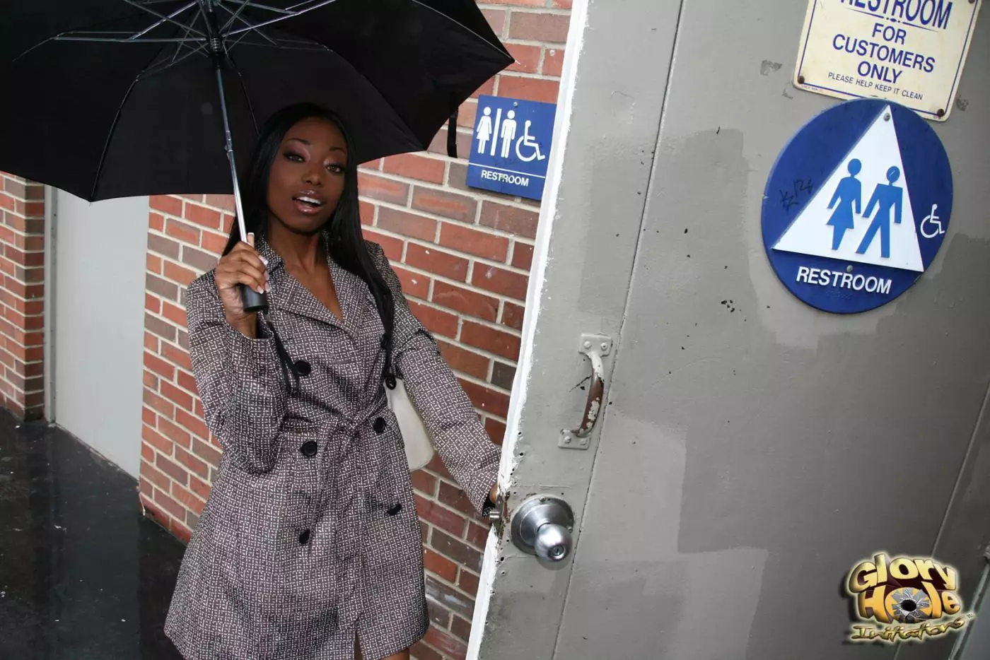 Черная красотка Courtney Fox трет обе дырочки, когда заглатывает член из дырки в стене — Courtney Fox