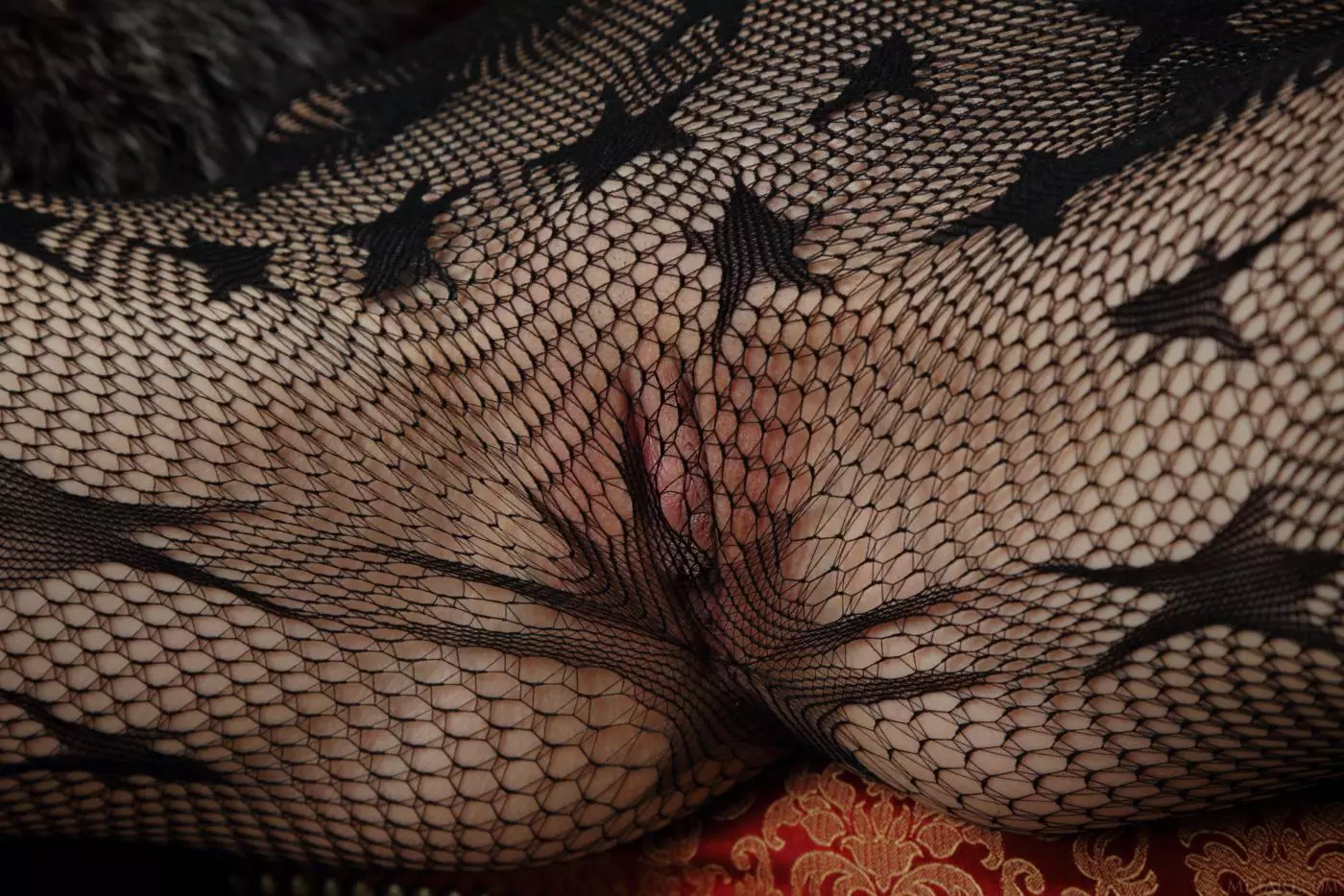Страстная блондинка Edita Recna показывает голую киску через черные колготки — Edita Recna