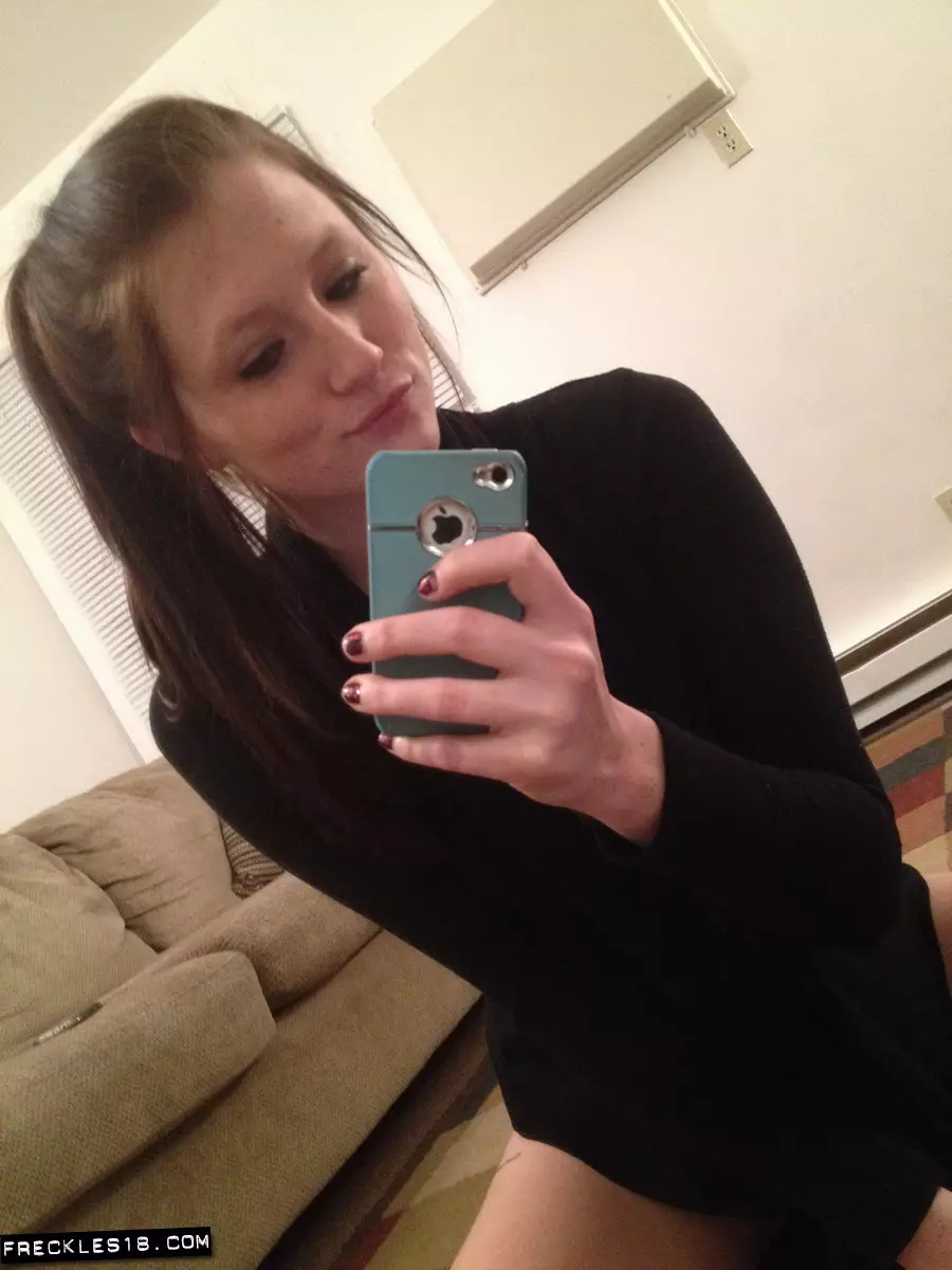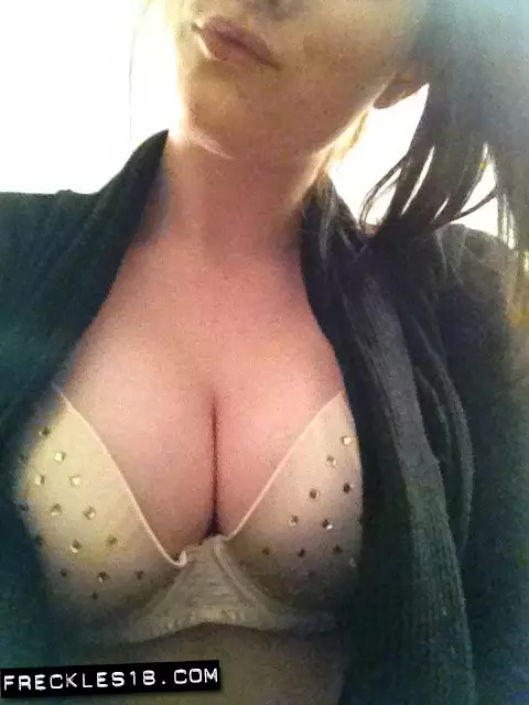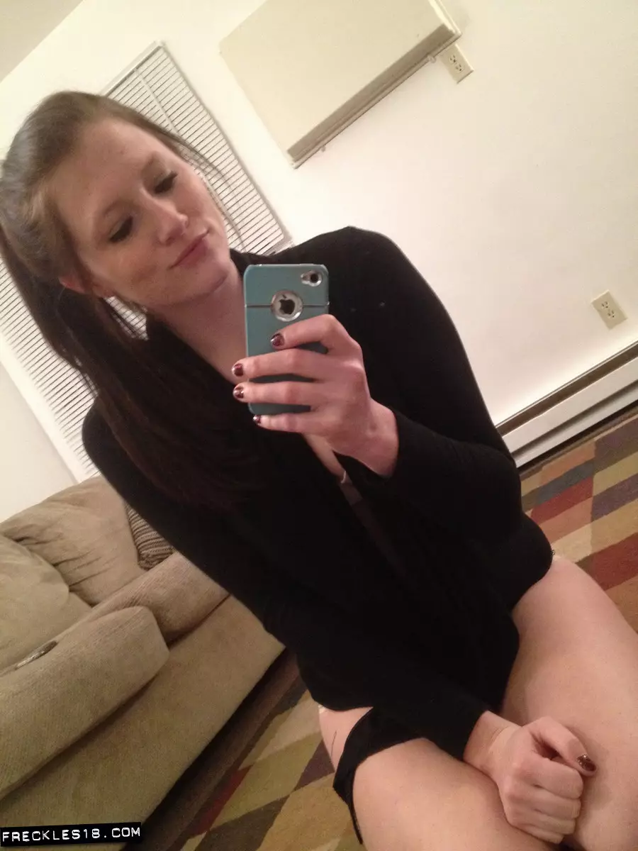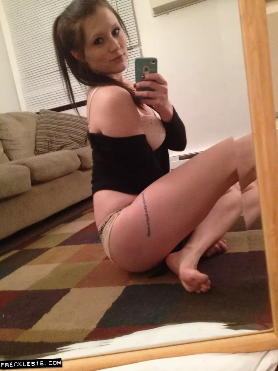 Темноволосая красотка Freckles снимает на телефон свои трусики и большие сиськи — Freckles