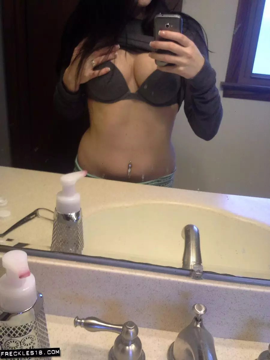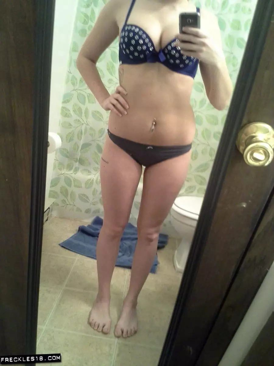 Похотливая темноволосая самка Freckles снимает селфи в эротичном бикини — Freckles