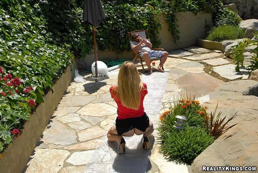 Похотливая белокурая матрона Aiden Starr в чулках занимается любовью в бассейне со счастливым мужиком — Aiden Starr