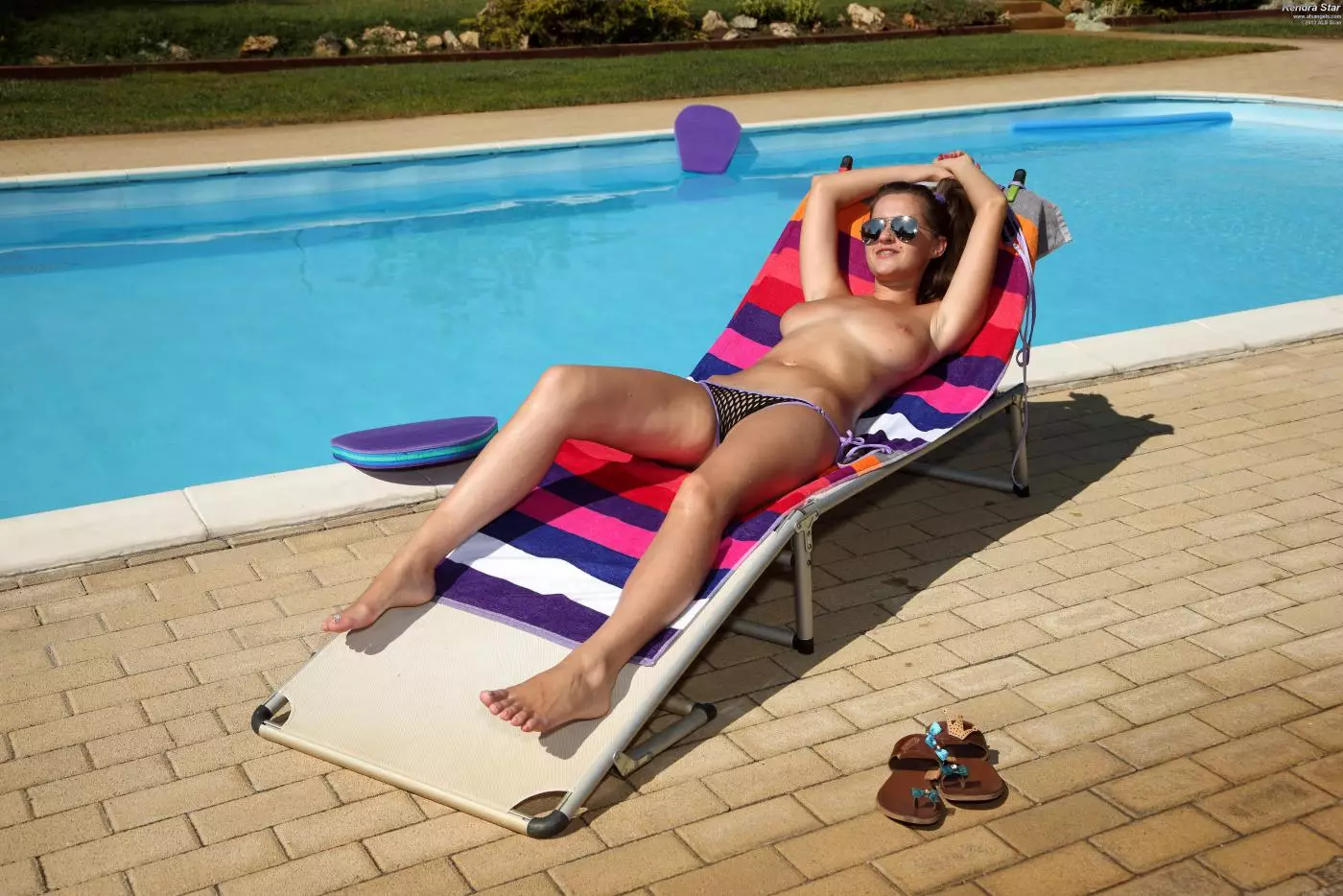 Красивая брюнетка Kendra Star позирует на природе и ласкает свою розовую киску — Kendra Star