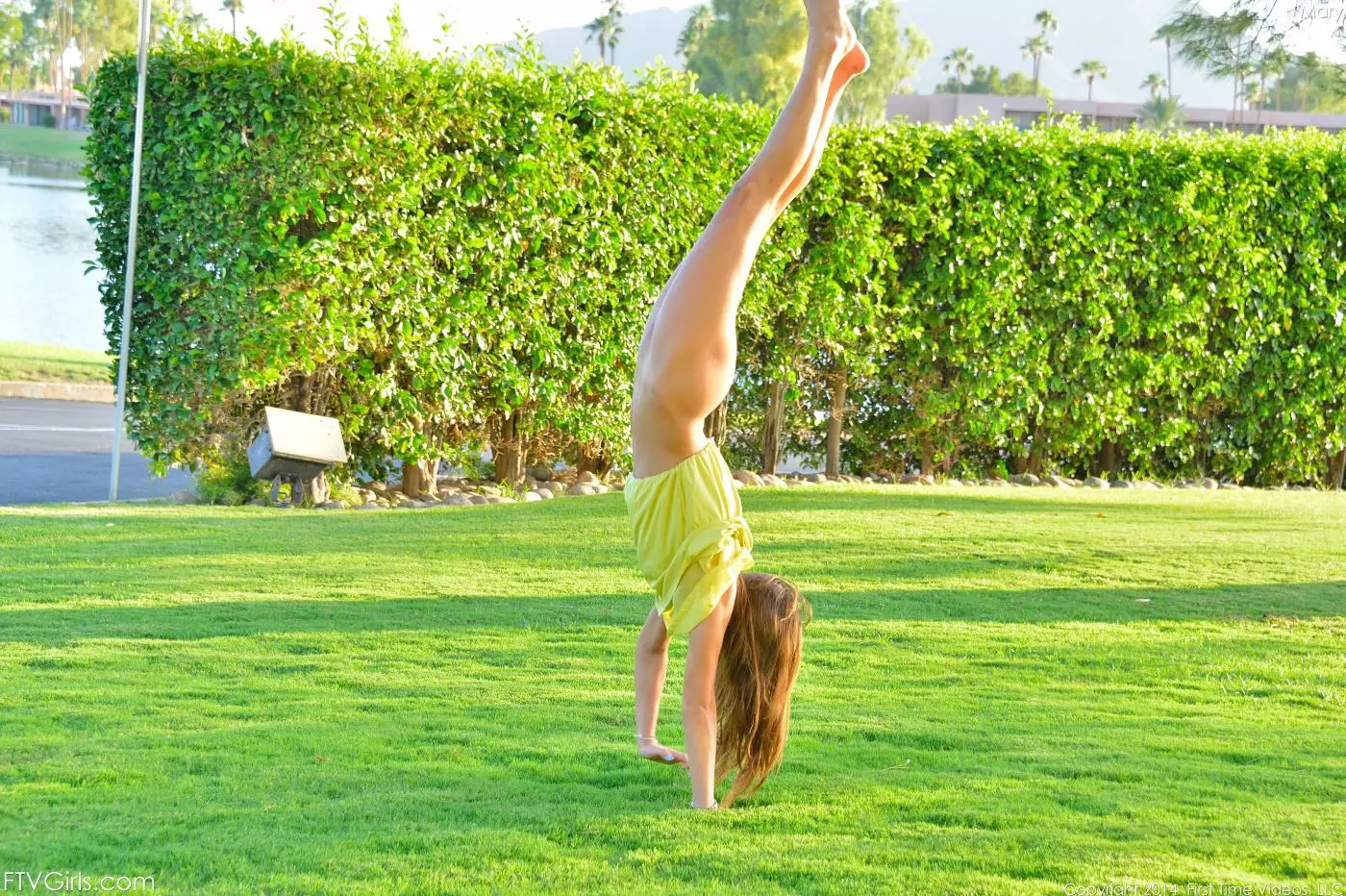 Сексуальная гимнастка Marry Lynn показывает спортивные навыки и трахает дилдо свою обнаженную киску на свежем воздухе — Marry Lynn