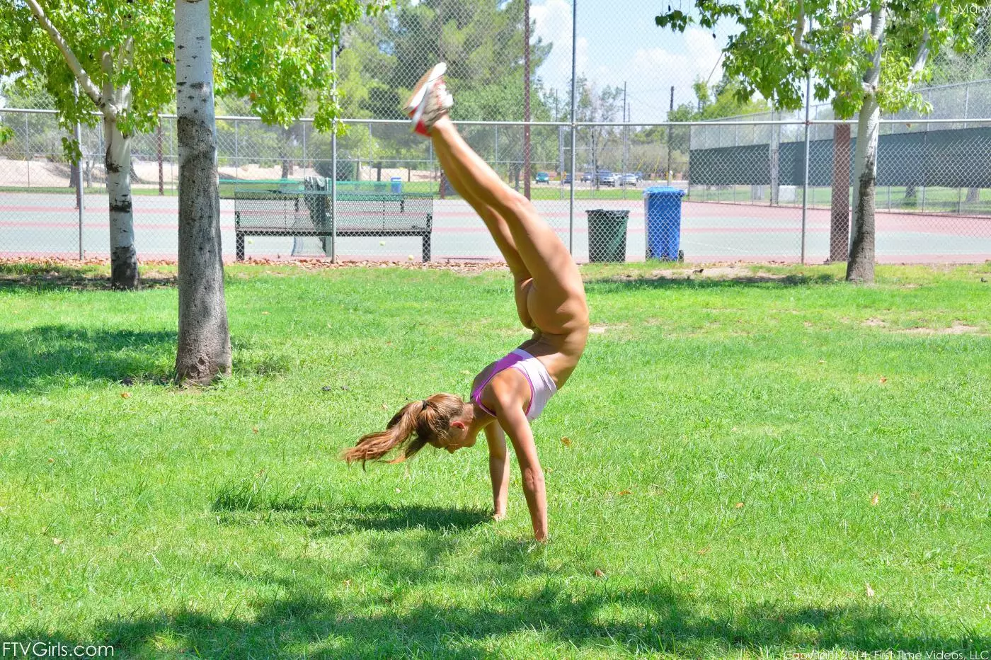 Сексуальная гимнастка Marry Lynn тренируется на природе, раздевается между упражнениями — Marry Lynn