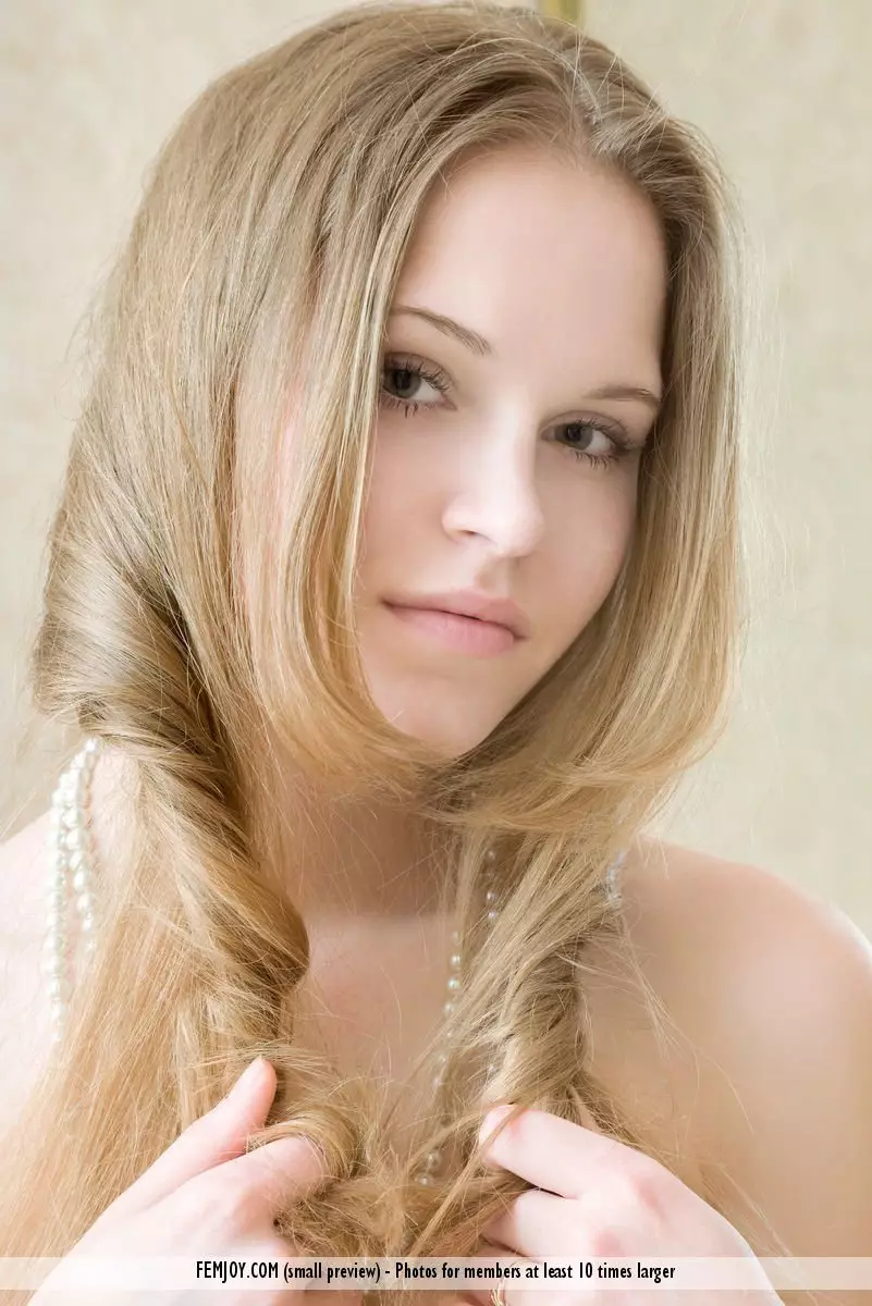 Юная цыпочка с ангельским личиком Mendes A позирует в одних чулках и показывает свою выбритую нежную киску — Mendes A