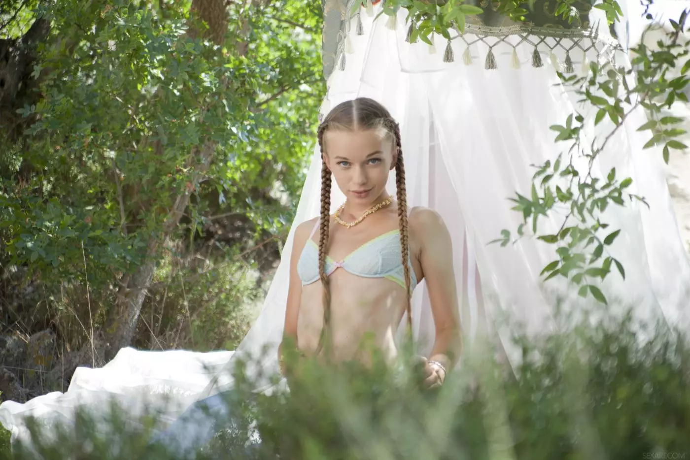 Миниатюрная блондинка Milena D снимает свое белье на улице и трет свой набухший клиторок — Milena D