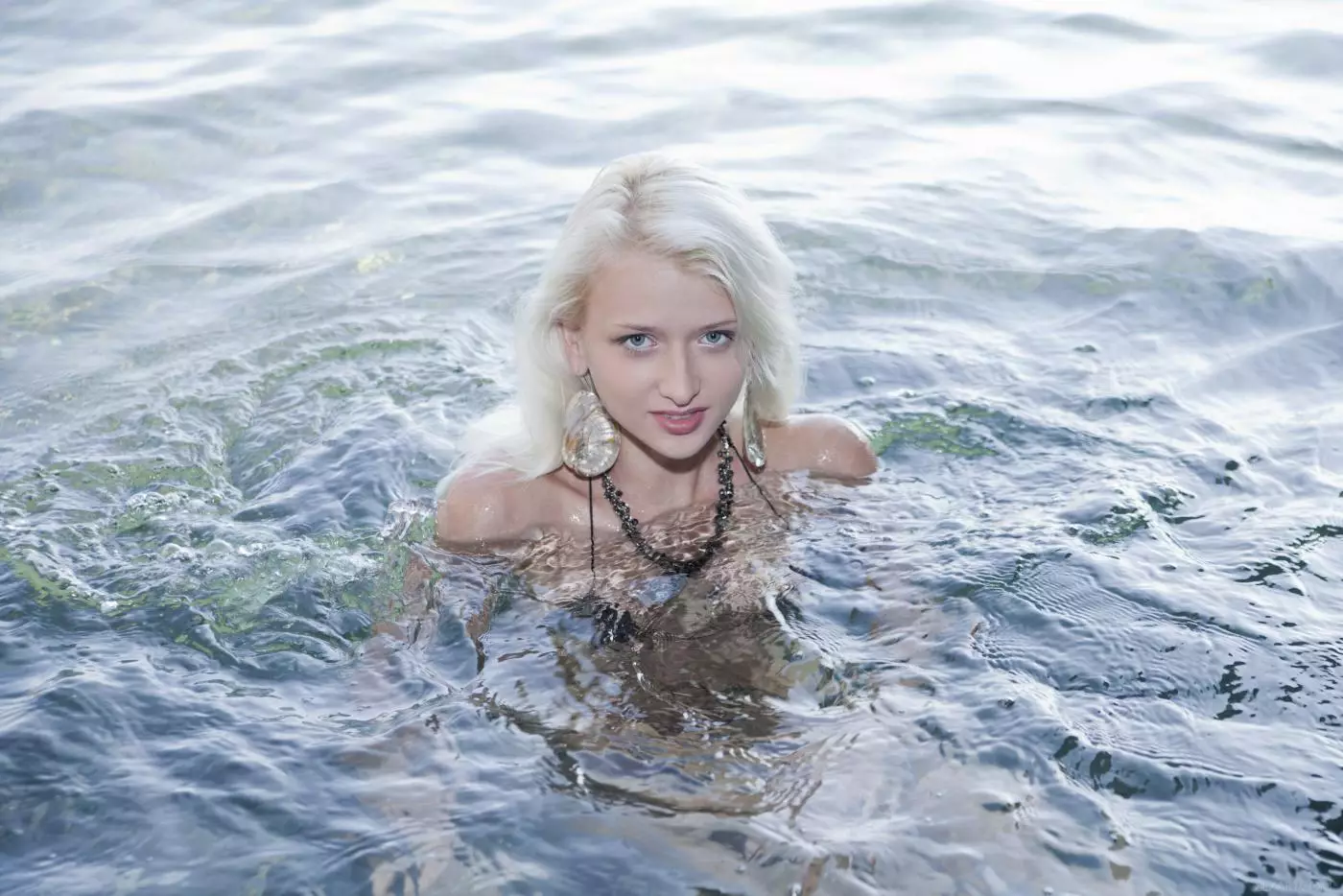 Сногсшибательная блондинка-подросток Nika N раздевается на пляже и трогает себя — Nika N