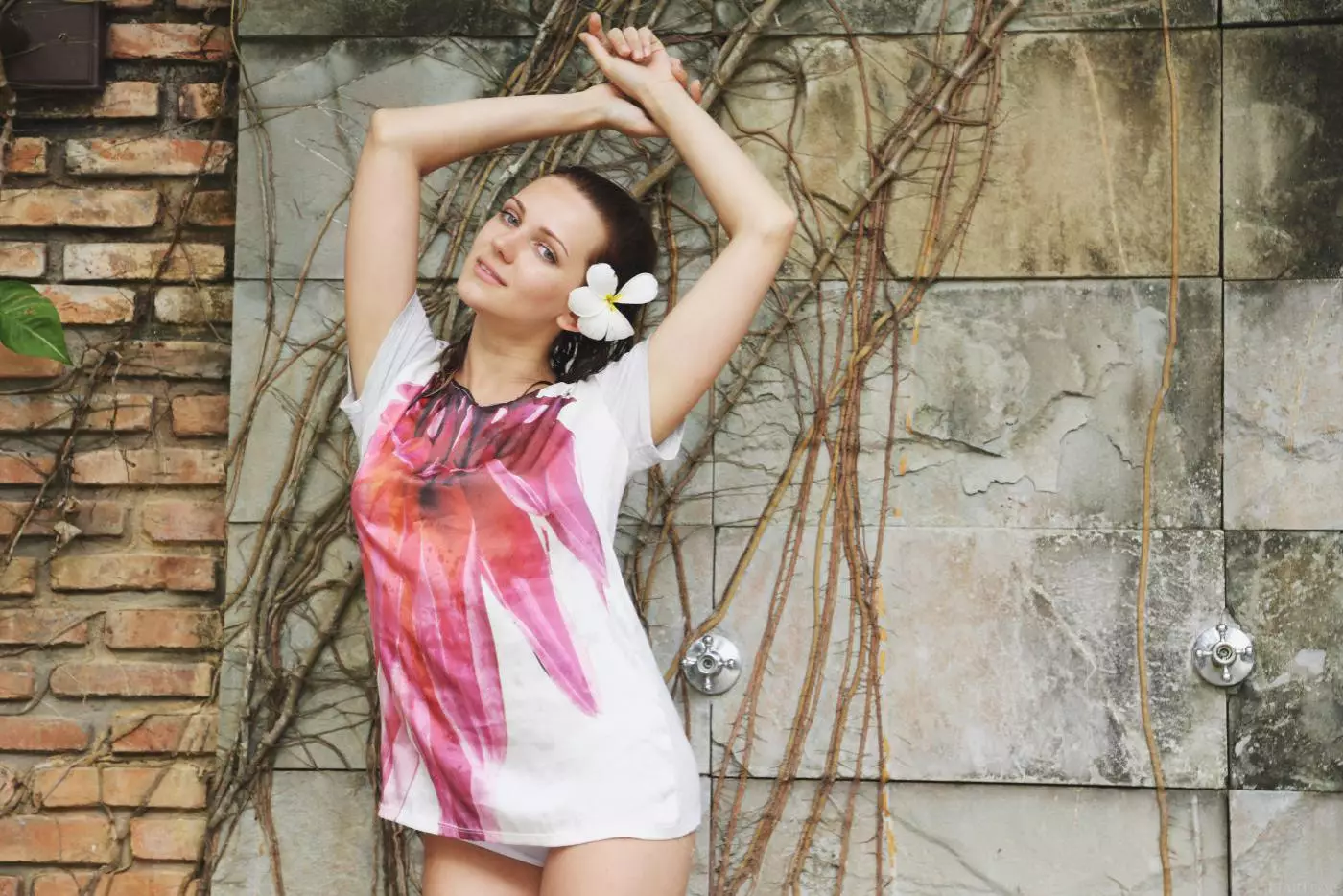Знойная брюнетка Niki Mey принимает душ на природе и мочит свое стройное тело — Niki Mey