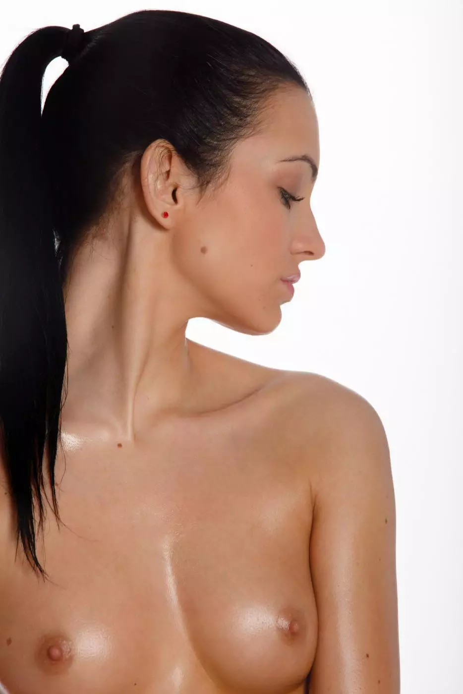 Молоденькая Sapphira A обнажается и покрывает свое тело маслом — Sapphira A
