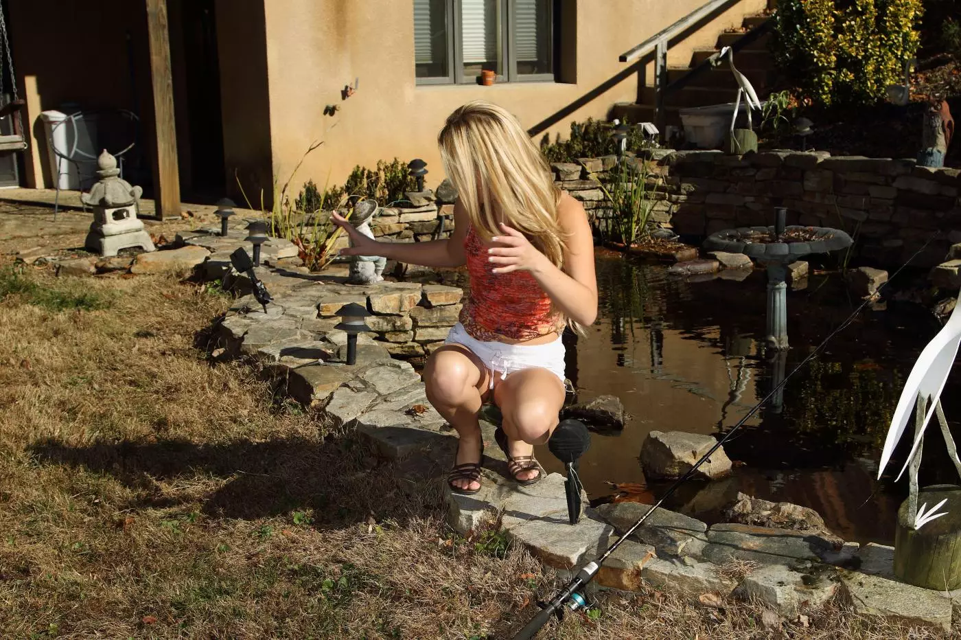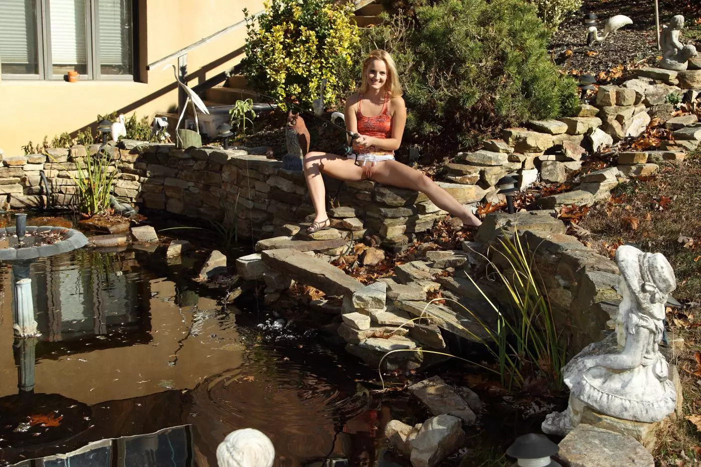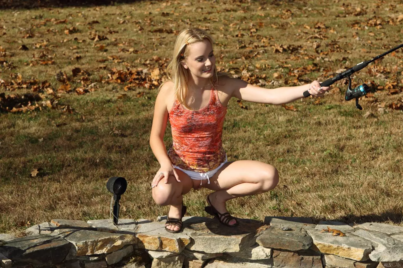 Чувственная красотка-блондинка Sara James показывает классную бритую киску на рыбалке — Sara James