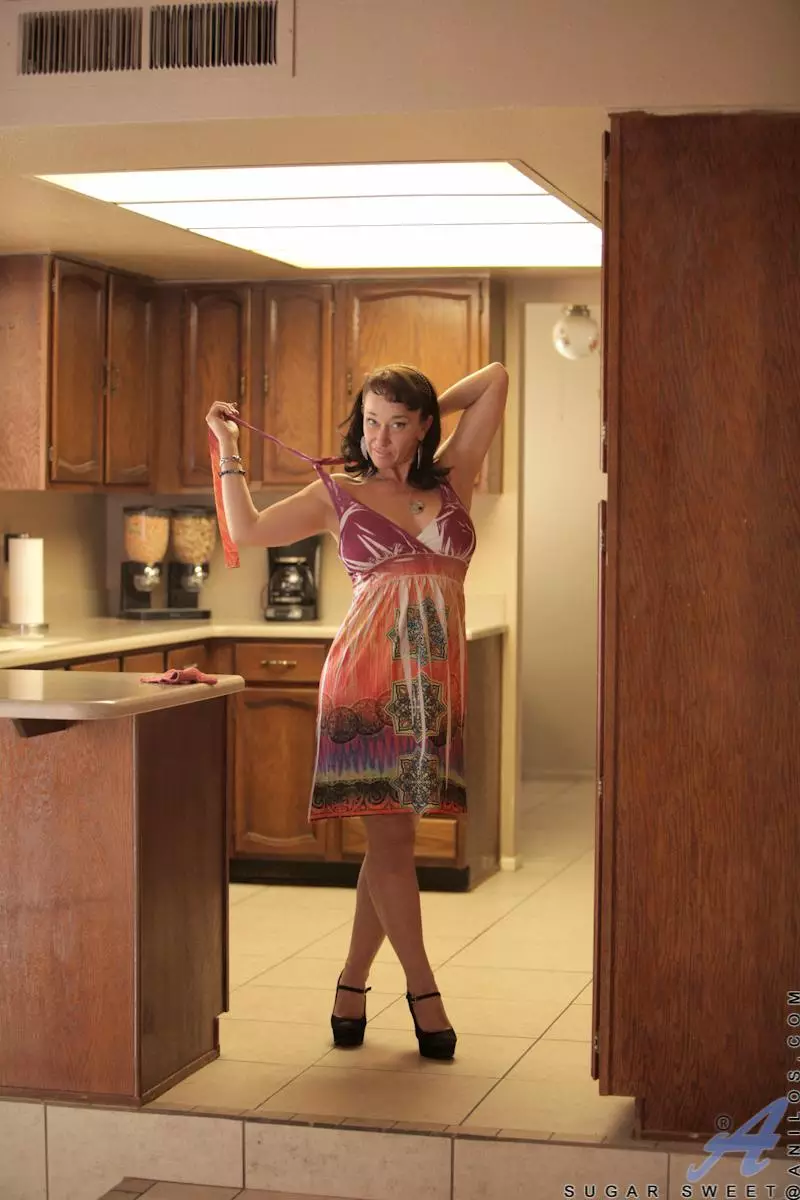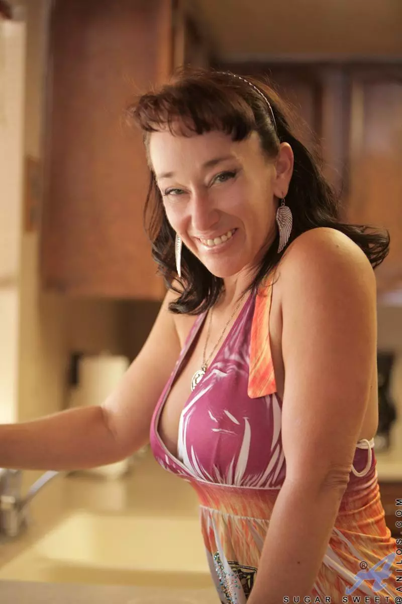 Зрелая брюнетка-извращенка Sugar Sweet ласкает свою большую грудь и роскошную киску — Sugar Sweet