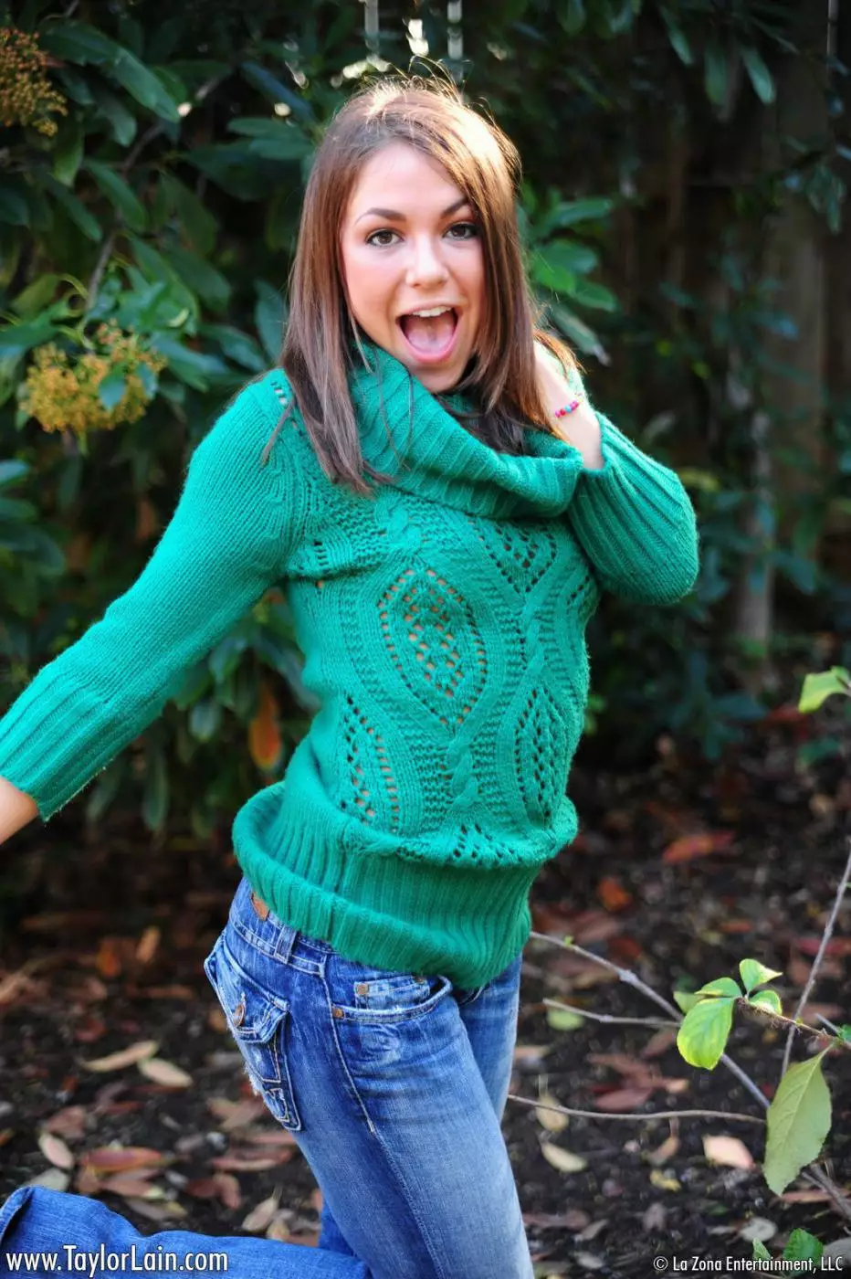 Милая брюнетка в узких джинсах Taylor Lain развлекается на природе — Taylor Lain