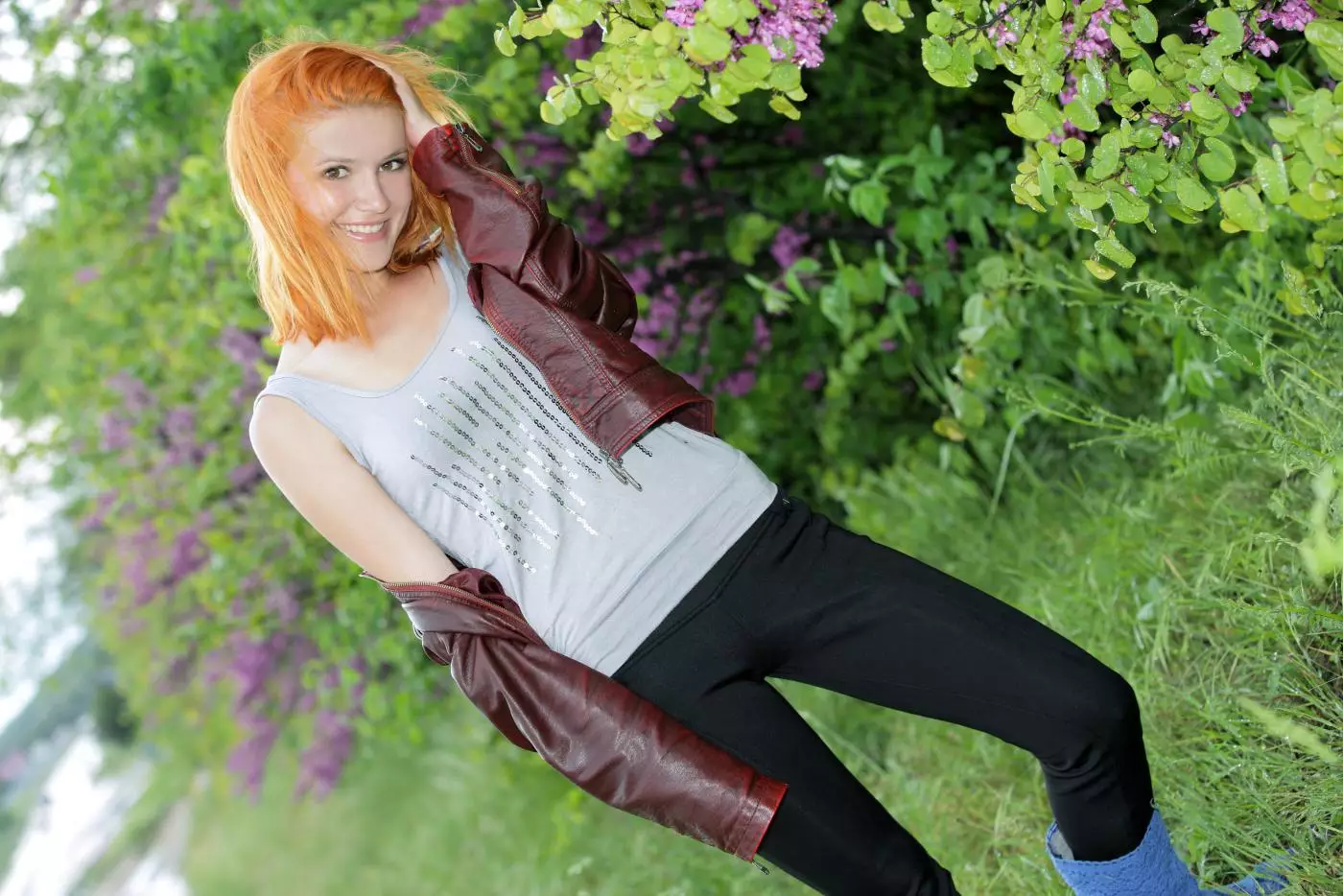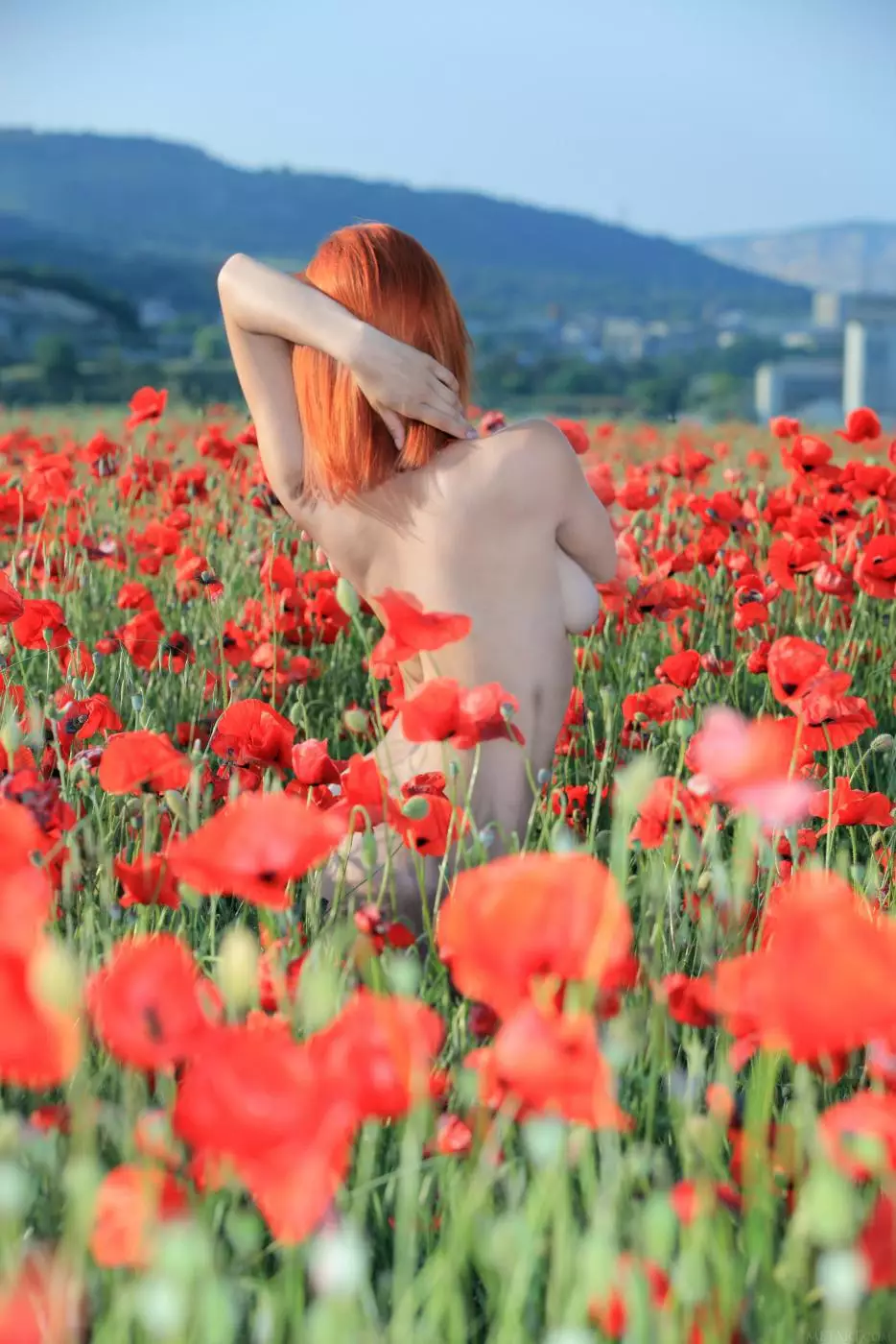 Рыжая милашка Violla A раздевается и позирует на цветочном поле — Violla A