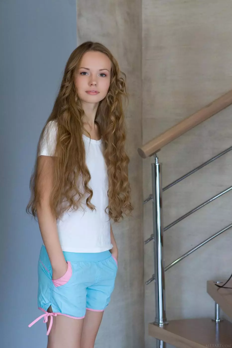 Похотливая, молодая куколка с кудрявыми волосами Virginia Sun снимает корсет и трусики, затем сексуально позирует — Virginia Sun V / Virginia Sun |