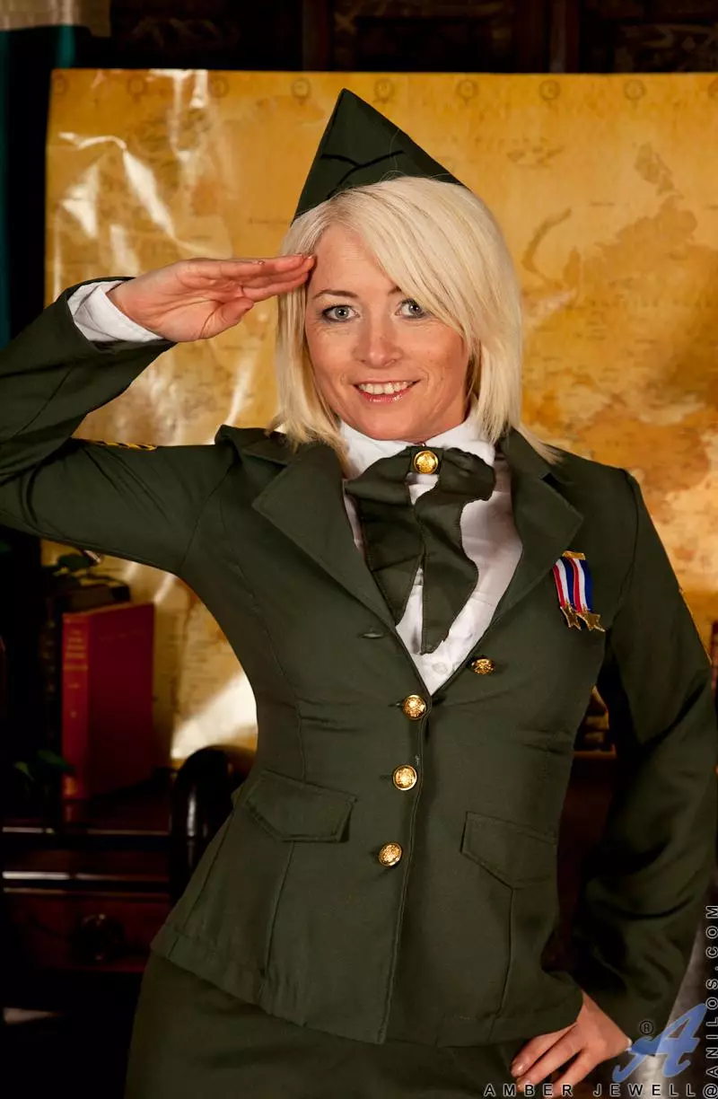 Сексуальная блондинка в военной форме Amber Jewell показывает голое тело — Amber Jewell