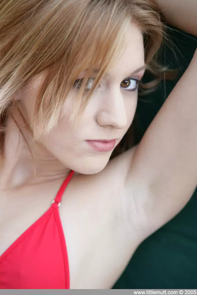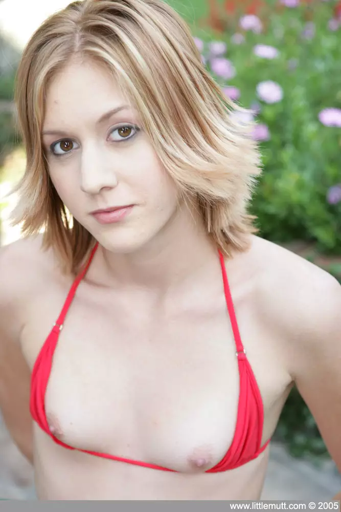 Милая девушка в крошечном красном бикини Amber Kelly показывает свою бритую киску на природе — Amber Kelly