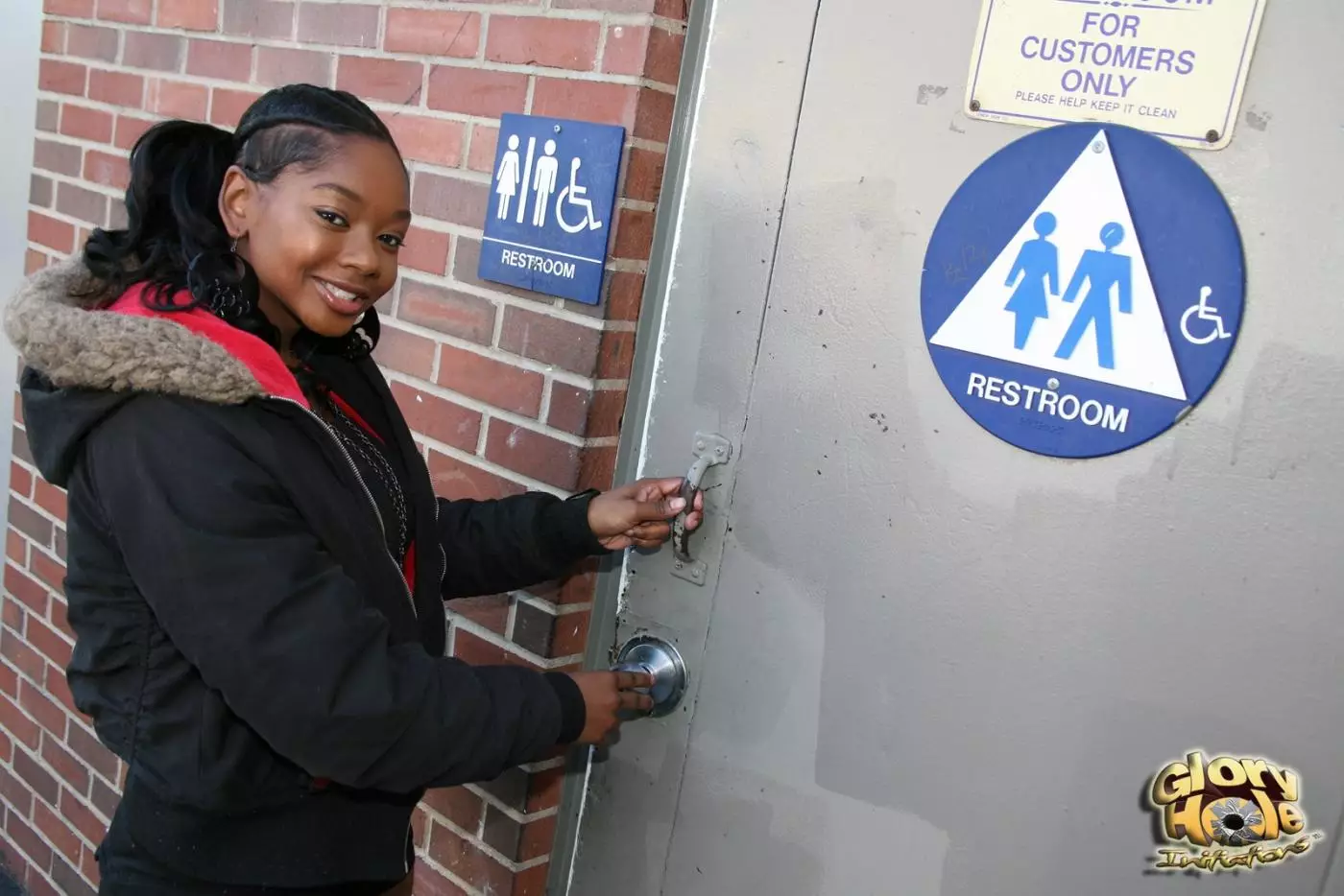 Черная грудастая детка Baby Cakes ласкает член через дырочку — Baby Cakes