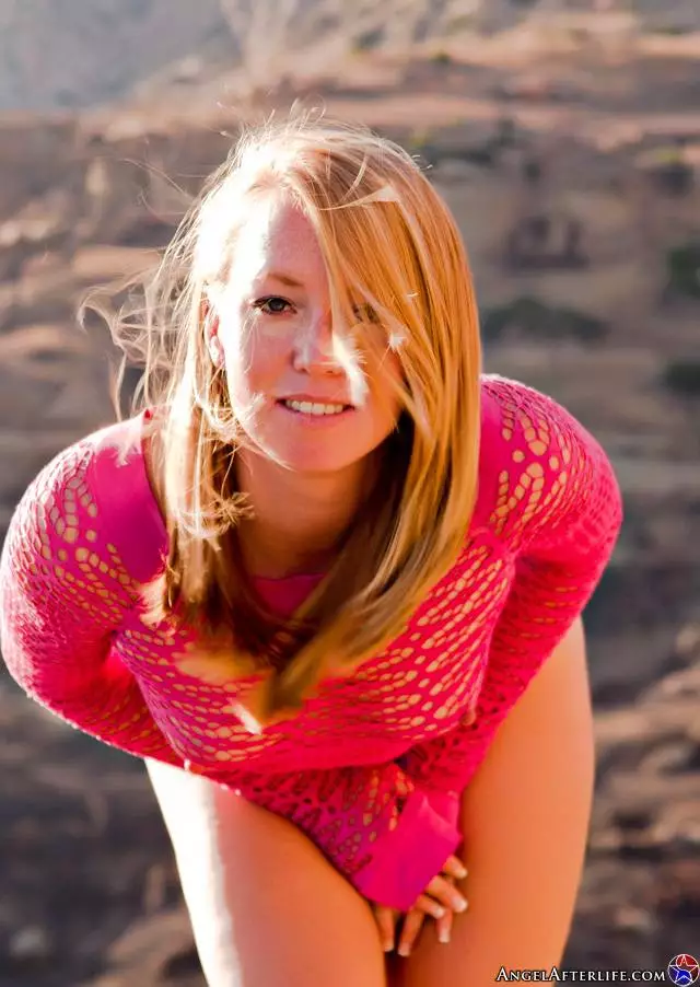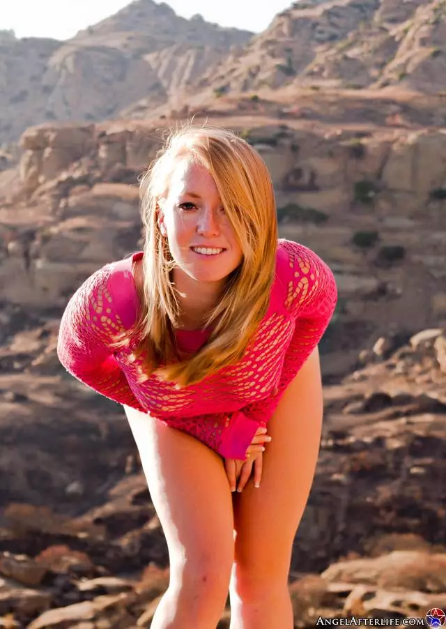 Сексуальная блондинка Ami Emerson позирует полуобнаженной в горах и дразнит своей пиздой — Ami Emerson
