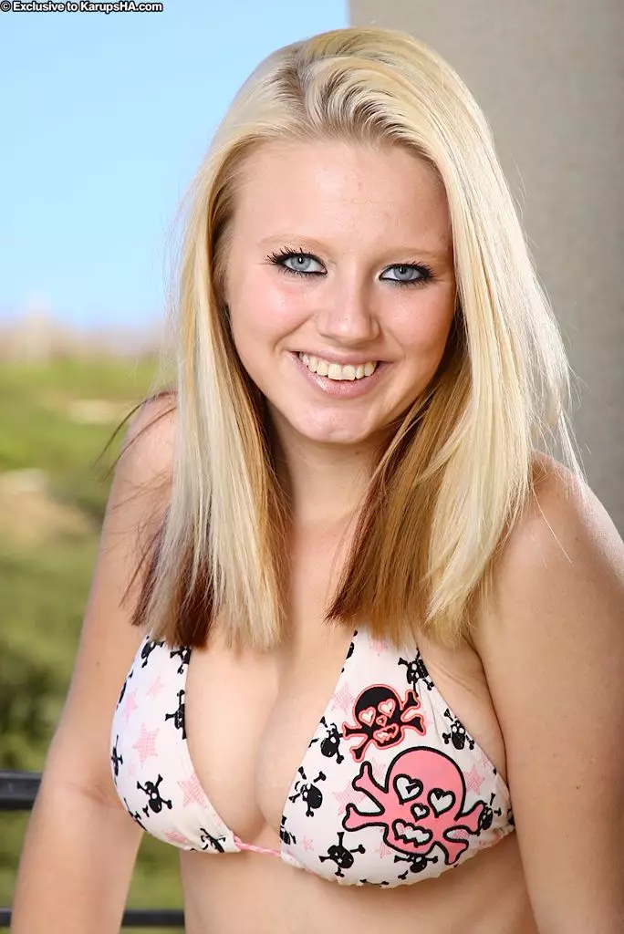 Кудрявая малолетняя брюнетка Ami Jordan с большой натуральной грудью снимает снаружи свое бикини — Ami Jordan