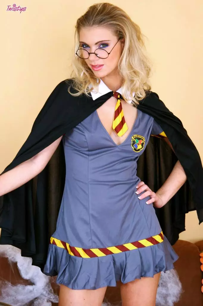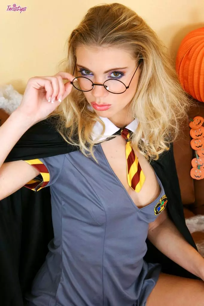 Ally, одетая в костюм на Хэллоуин, обнажается и полностью показывает свою волосатую киску — Ally