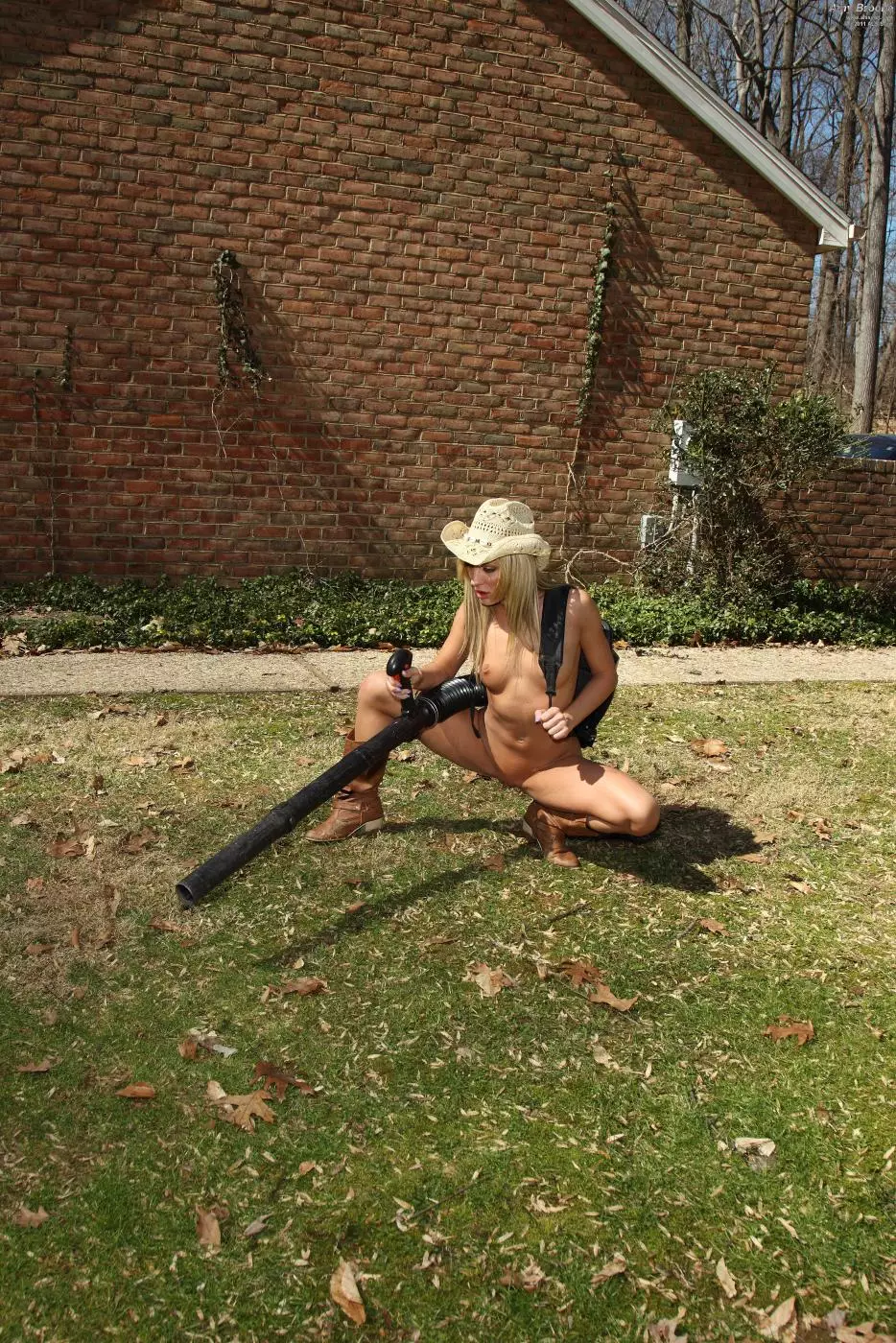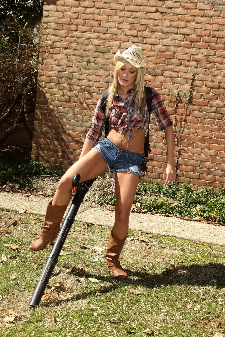 Грязная светловолосая ковбойша Amy Brooke заставила своего парня ублажать ее игрушками и мастурбацией в саду — Amy Brooke