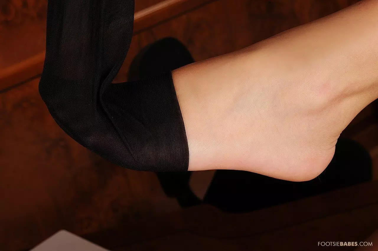 Бизнес-леди в чулках Angel Pink показывает стопы, предварительно раздевшись до гола — Angel Pink