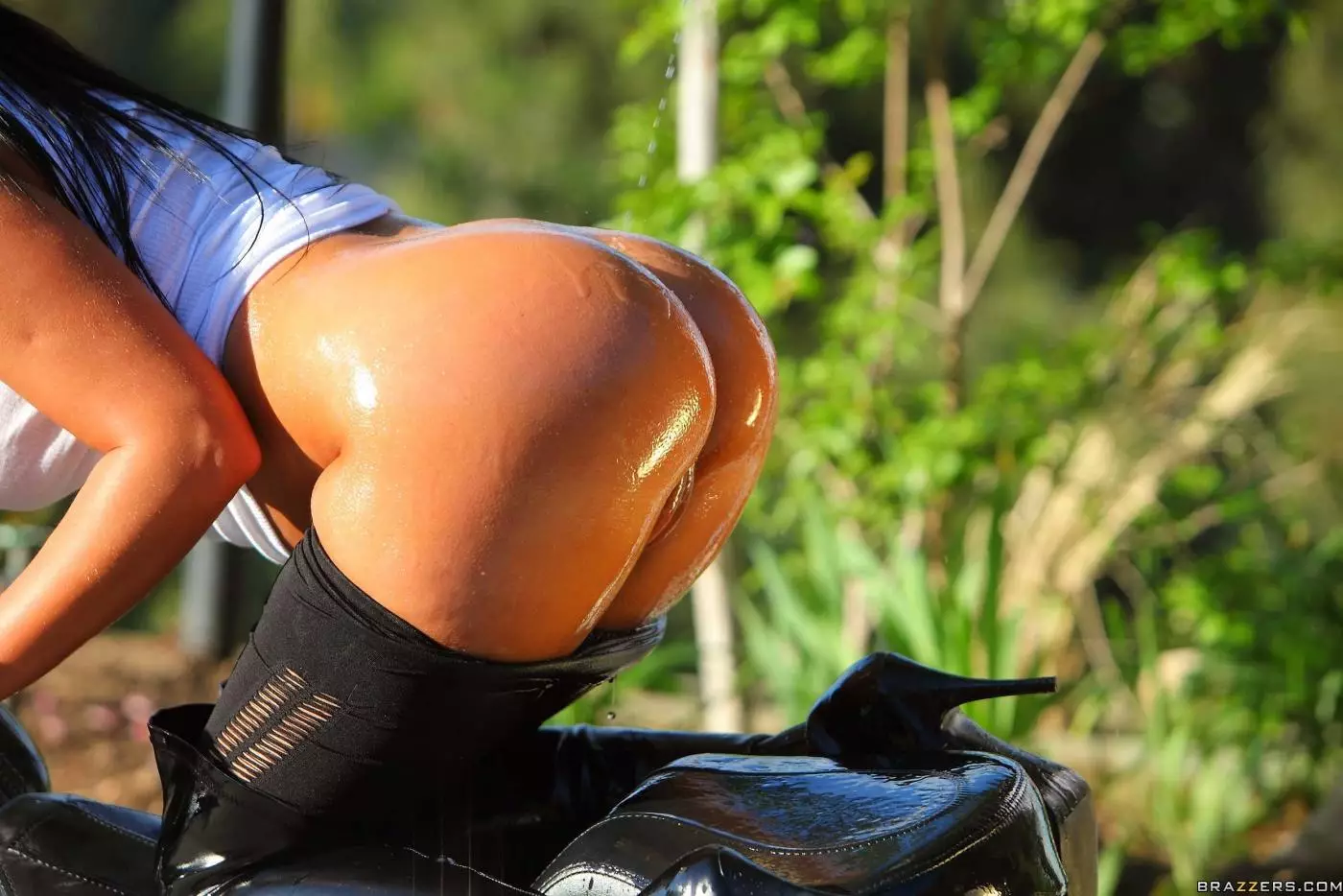 Шикарную брюнетку Angelica Heart трахают в ее мокрую попку около ее мотоцикла — Angelica Heart