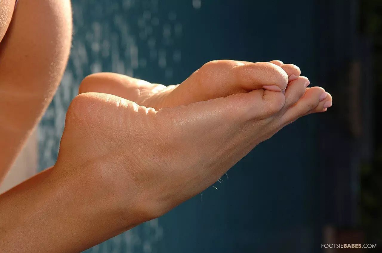 Грудастая блондинка Anita Dark показывает свои прелести и стопы рядом с бассейном — Anita Dark