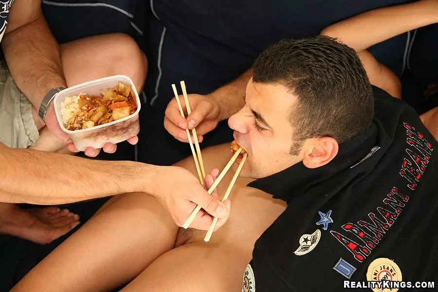 Шлюхастая детка с узкими дырочками Asia Deville снимает красные трусики и получает секс с двумя — Asia Deville