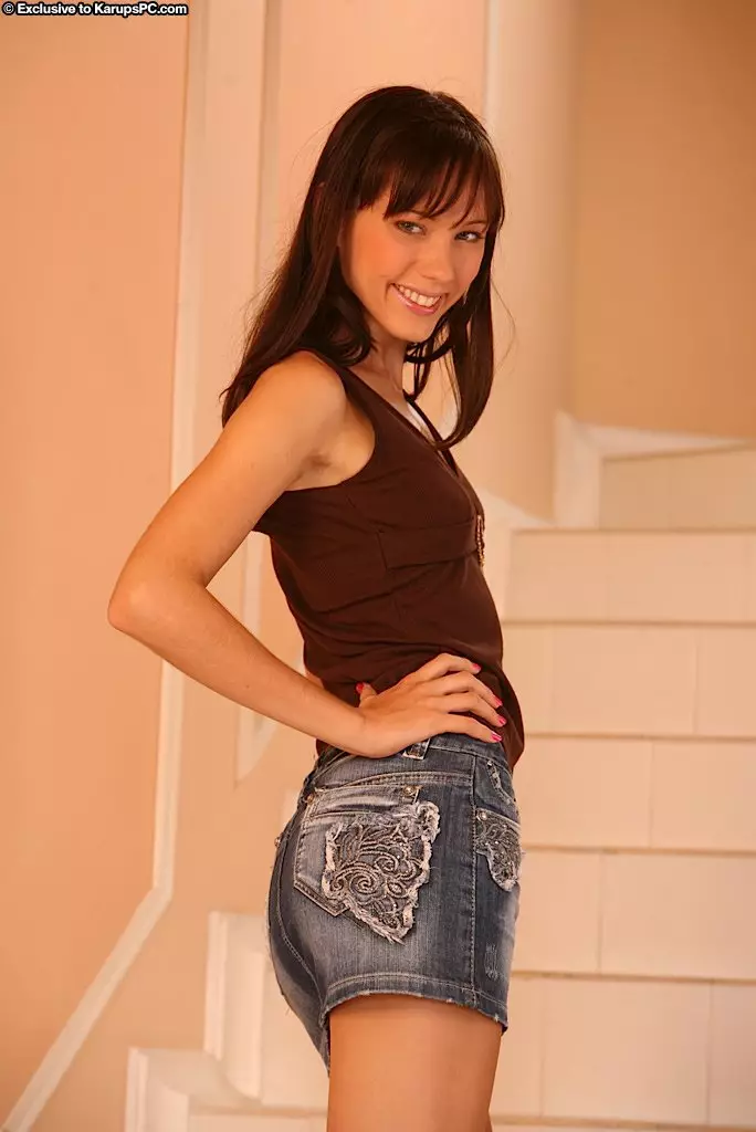 Обнаженная брюнетка-подросток Aspen Richardsen трахает дилдом бритую киску на лестнице — Aspen Richardsen