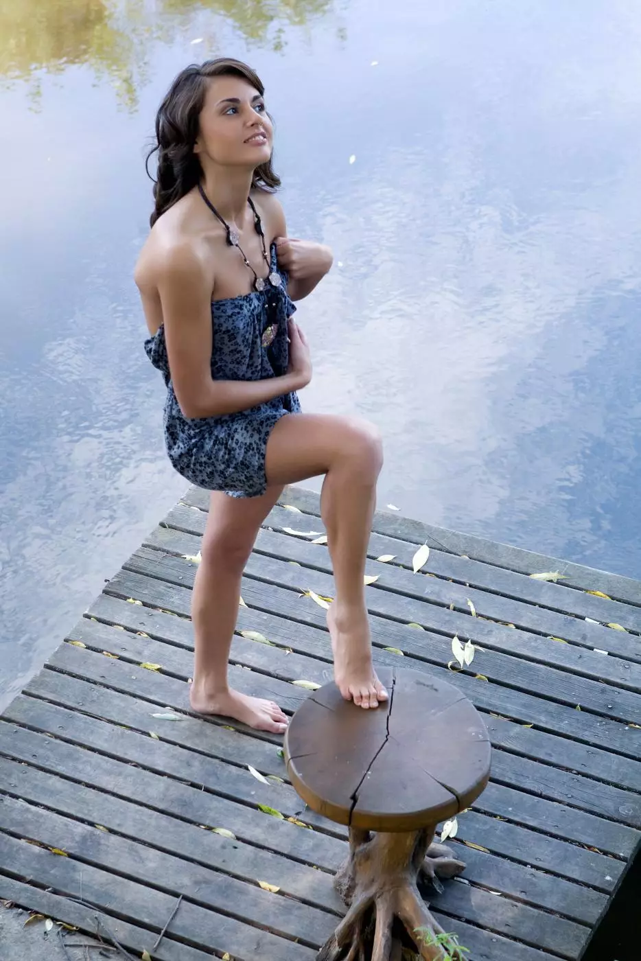 Свежая латинка Astrud A демонстрирует раздвинутую пизду на берегу реки — Astrud A