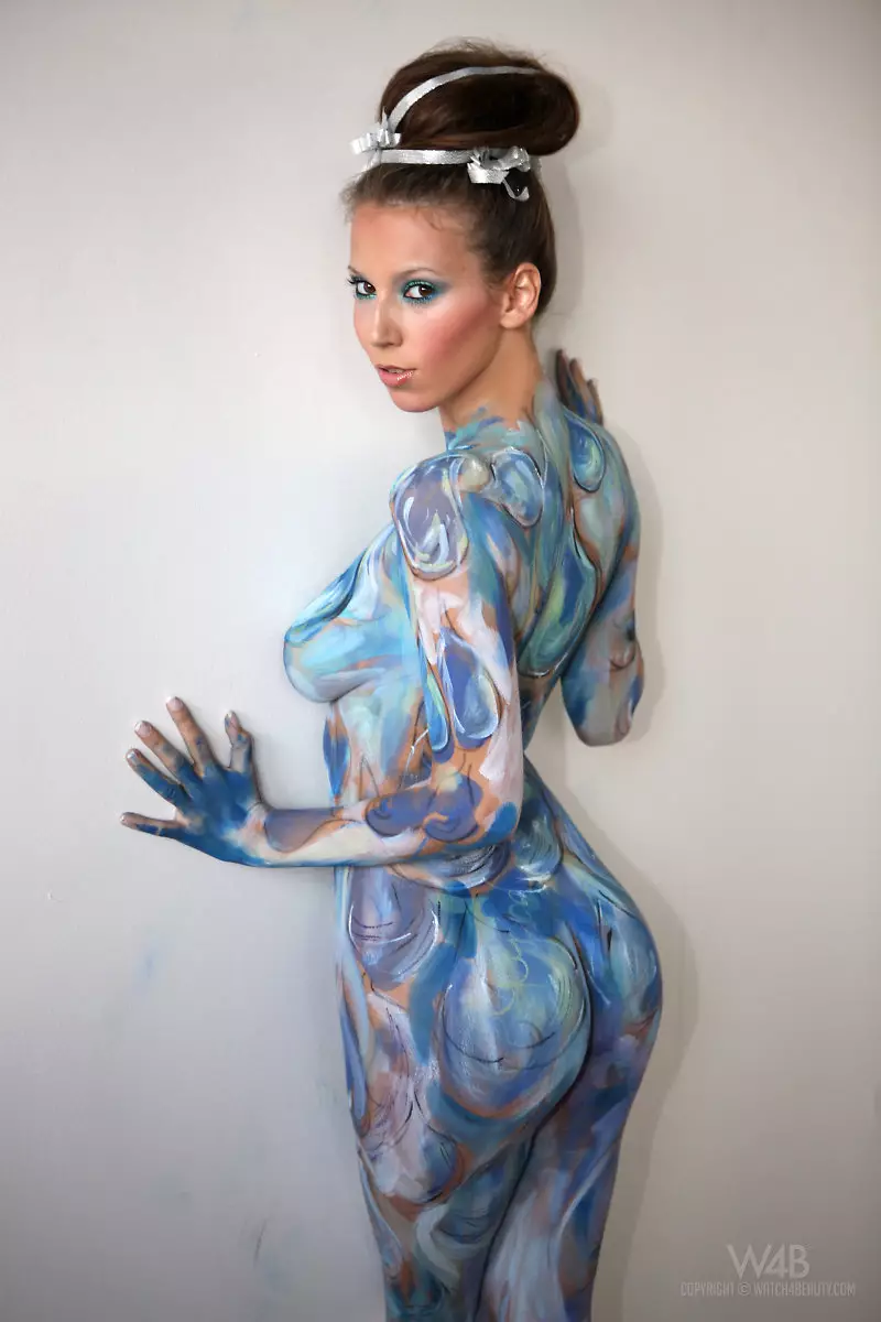 Грудастая модель в белых туфлях на каблуках Avia A демонстрирует свою киску — Avia A