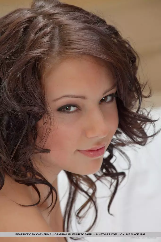 Темноволосая красавица Beatrice C широко раздвигает ноги и показывает свою выбритую киску — Beatrice C