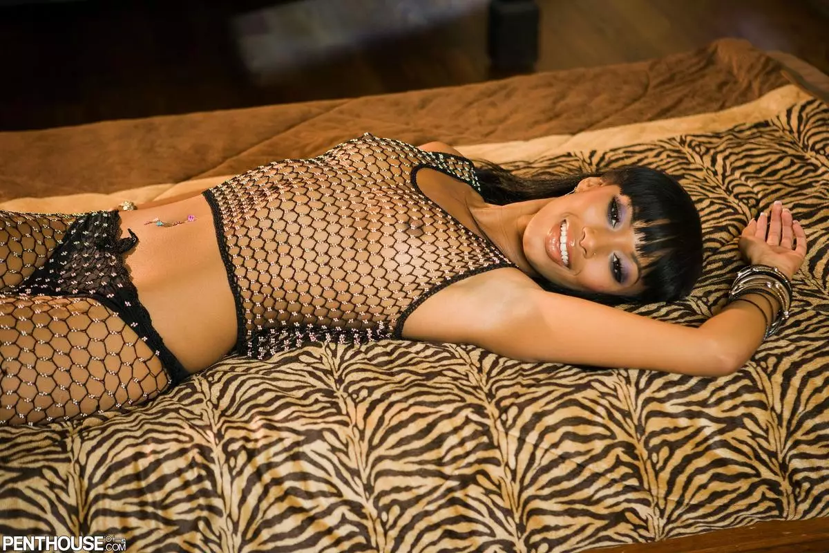 Стройная красотка-негритянка Bella Moretti позирует в сеточке, а потом оголяет свое темное тело — Bella Moretti