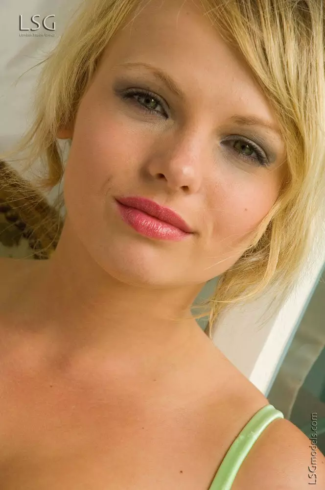 Европейская блондинка Blackberry Brittany в зеленом корсете выставила свои кусты и сочные груди — Blackberry Brittany