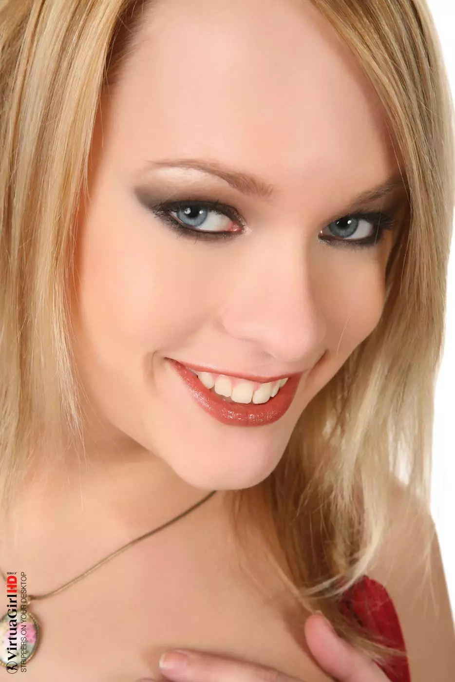Белокурая малышка Blue Angel демонстрирует голые титьки и сдвигает трусики чтоб показать под юбкой выбритую киску — Blue Angel