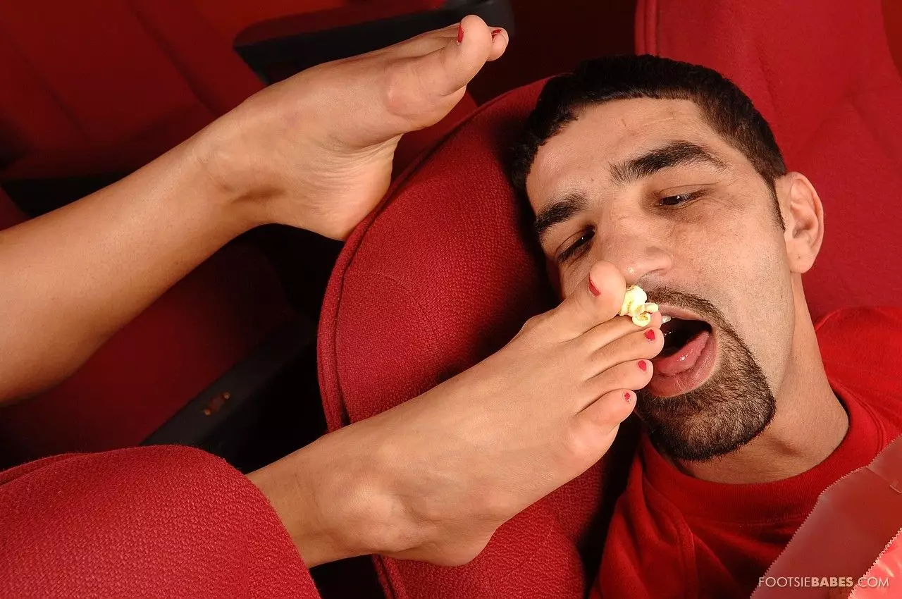 Мужик лижет пальцы ног у потрясающей блондинки Britney, а потом жарит ее в лысую киску в кинотеатре — Britney