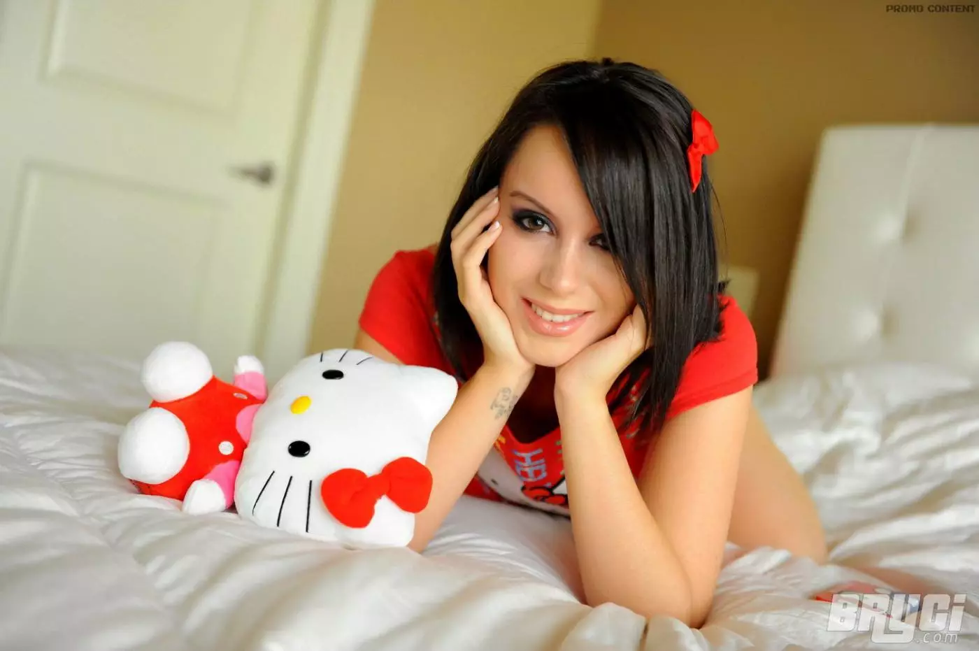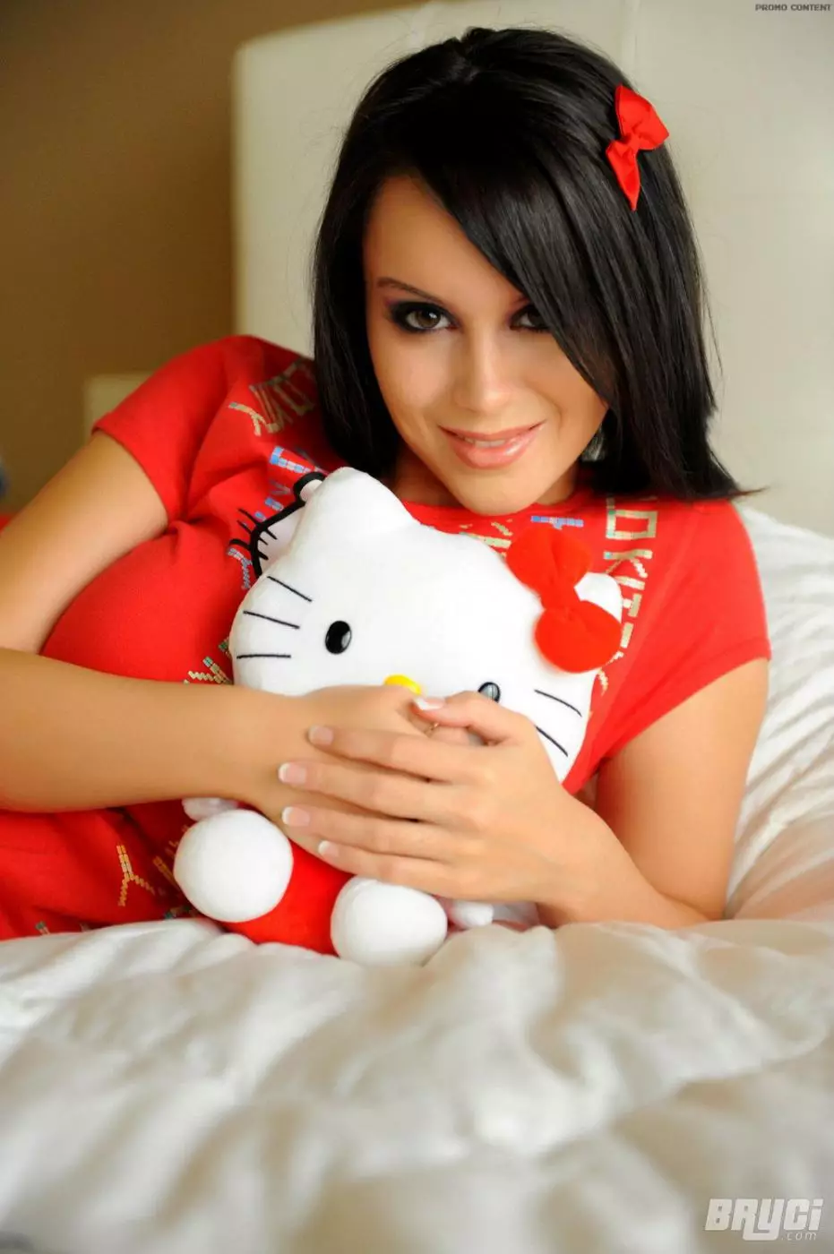 Грудастая брюнетка Bryci сняла красные трусики и дрочит пизду на кровати — Bryci