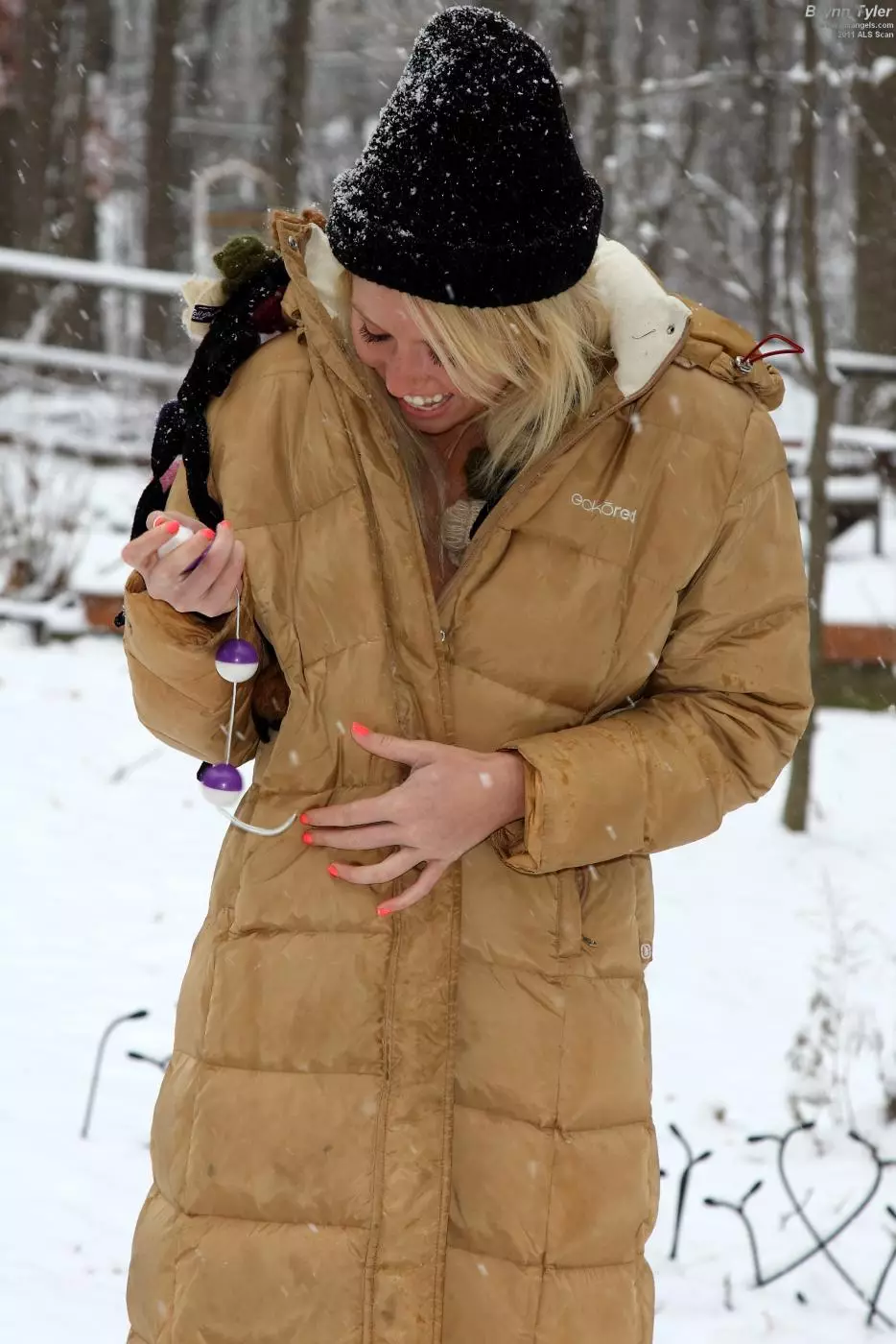 Очень горячая блондинка Brynn Tyler остается абсолютно обнаженной в холодный зимний день — Brynn Tyler
