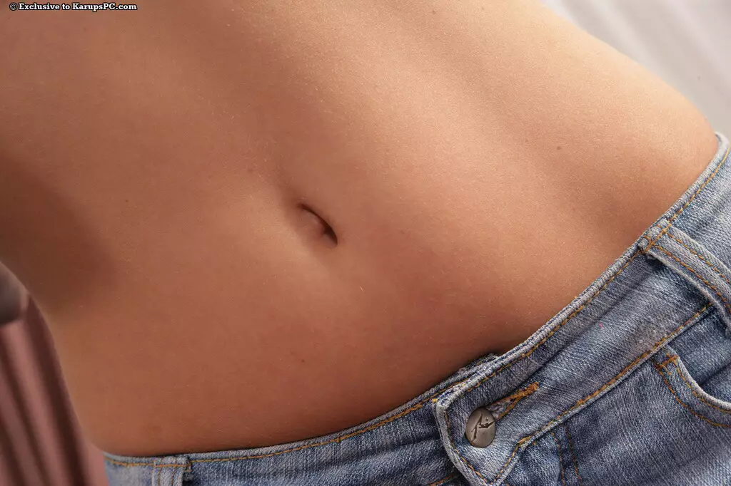 Белокурый котенок Carla Cox с сексуальной гладкой киской снимает свои джинсовые шортики — Carla Cox