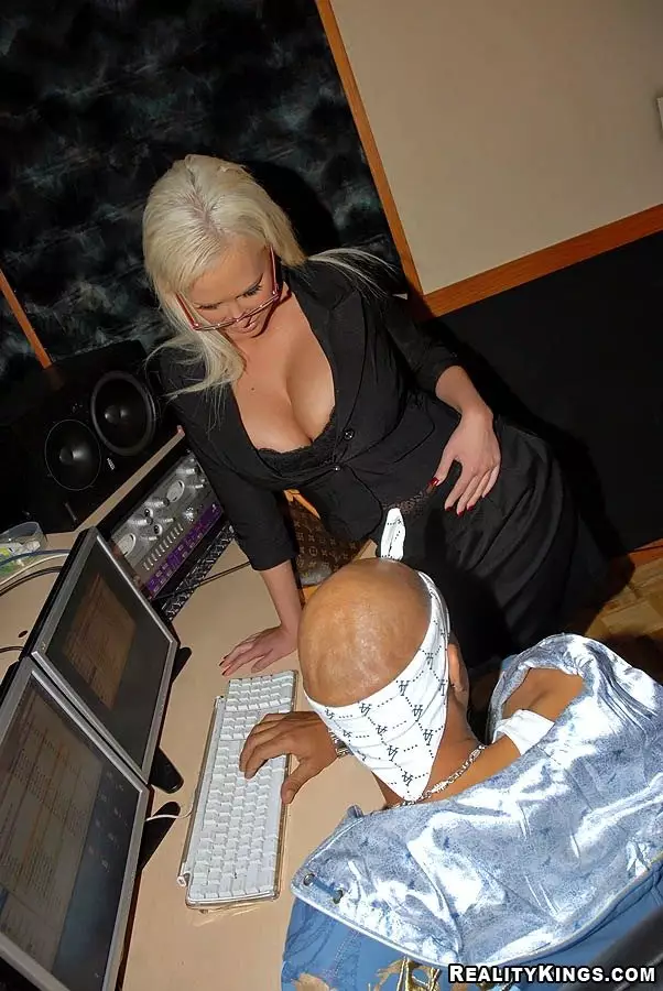 Очкастая блондинка с большой грудью и гладкой киской Carly Parker получает черный член в студии — Carly Parker