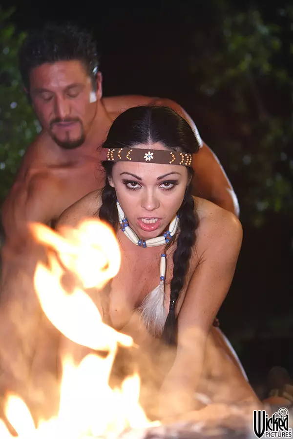 Знойная экзотическая брюнетка Cherokee оседлала хуй и жестко порется сзади у огня — Cherokee