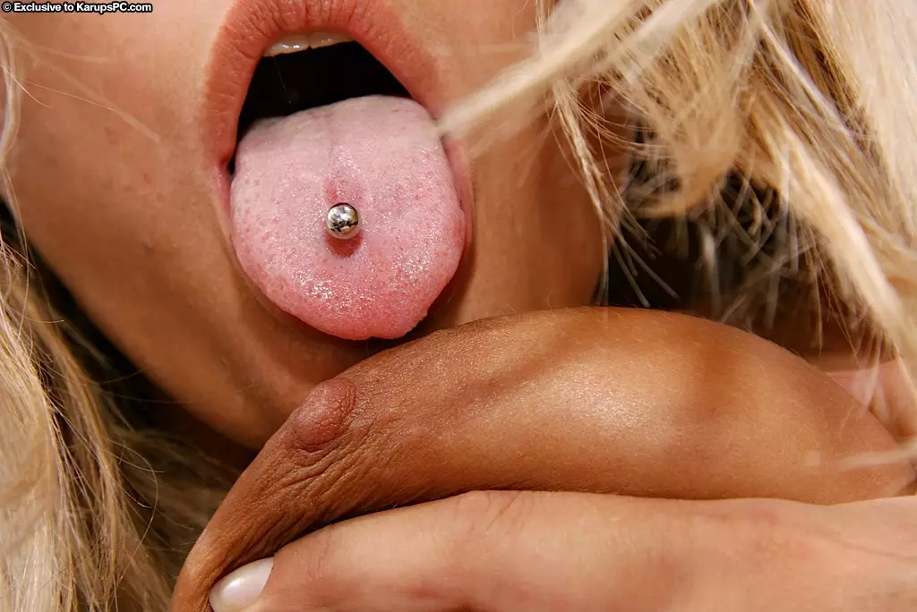 Блондиночка с пирсингом в языке Connie Rose получает удовольствие, засовывая пальчики в свою теплую розовую дырочку — Connie Rose