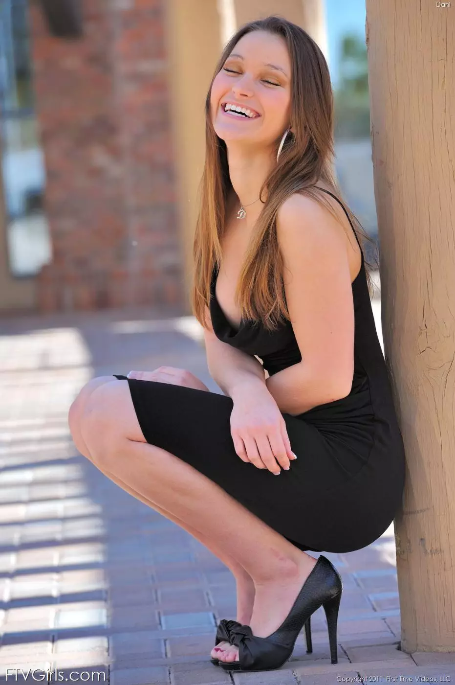 Девочка с сексуальным телом Dani Daniels отбросила черное платье и позирует голой в публичном месте — Dani Daniels